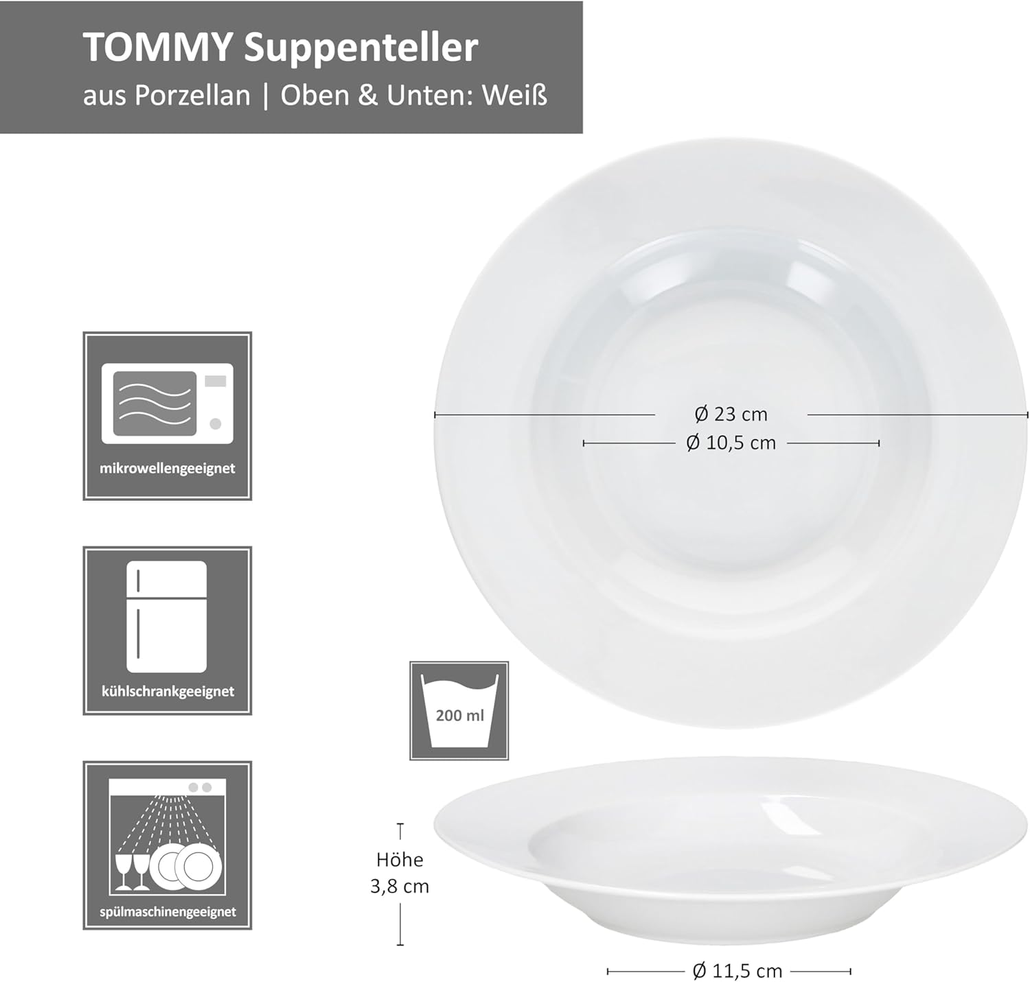 - MamboCat 6er Set weisse Tommy Suppenteller | 200 ml | runde tiefe Teller | Das Set ist aus robustem und langlebigem Porzellan gefertigt und für bis zu 6 Personen