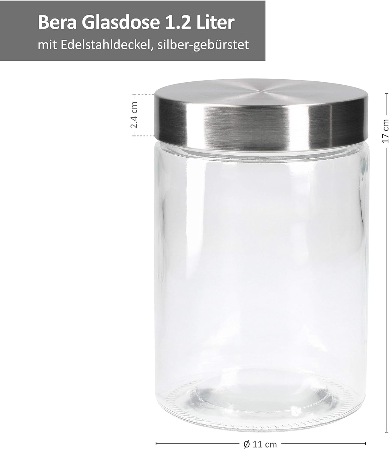 - 6tlg. Set Vorratsglas Bera mit Edelstahldeckel silber-gebürstet, Vorratsdosen, Runddosen