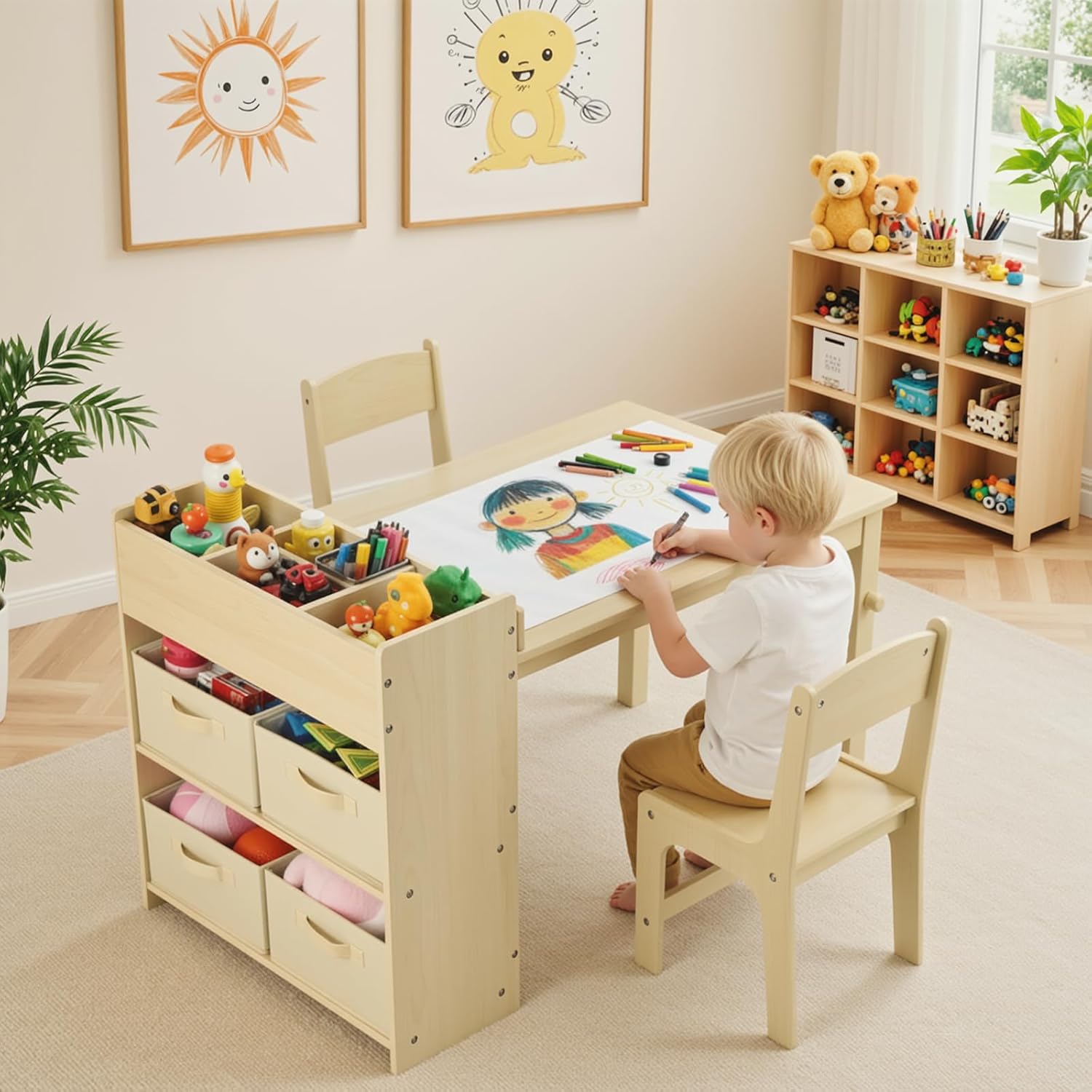 - ❤️[Mit Stauraum]: Der Kindertisch mit Stauraum verfügt über zwei grosse Fächer, zwei kleine Fächer und zwei Regale unten, die eine einfache Sortierung von Kunstmaterialien, Bilderbüchern und Spielzeugen ermöglichen. Zusätzlich sind vier