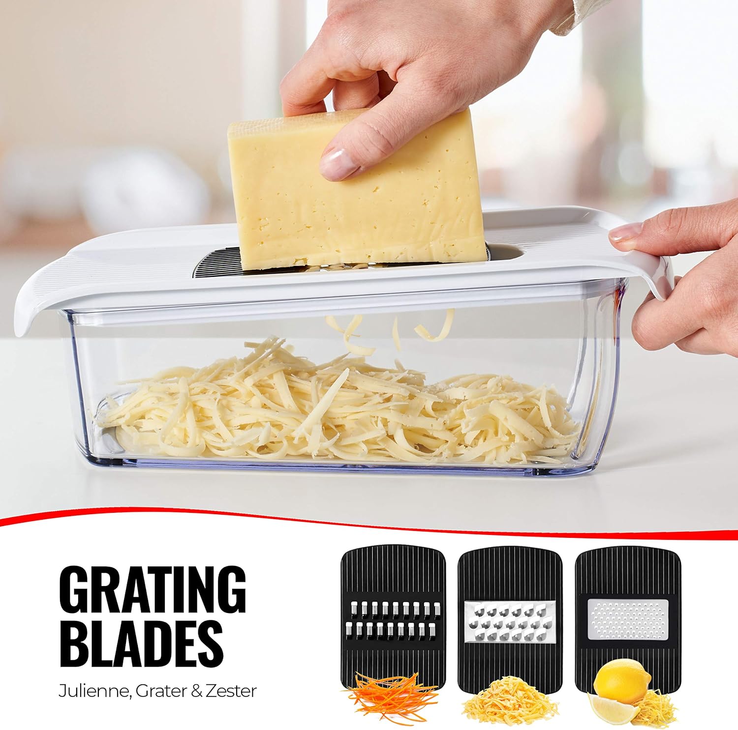 - Keine Unordnung und kein Ausrutschen - unsere Auffangschale macht das Kochen so viel bequemer, keine Unordnung und kein Durcheinander! Es macht die Reinigung mühelos und unser rutschfester Boden macht auch Ihr Schneiden und Reiben so viel einfacher.