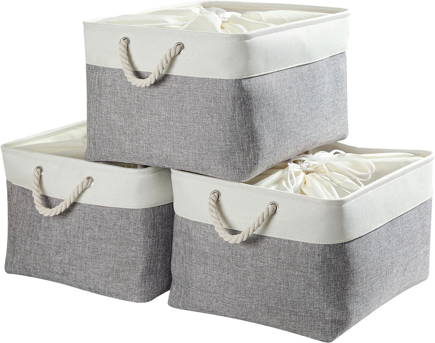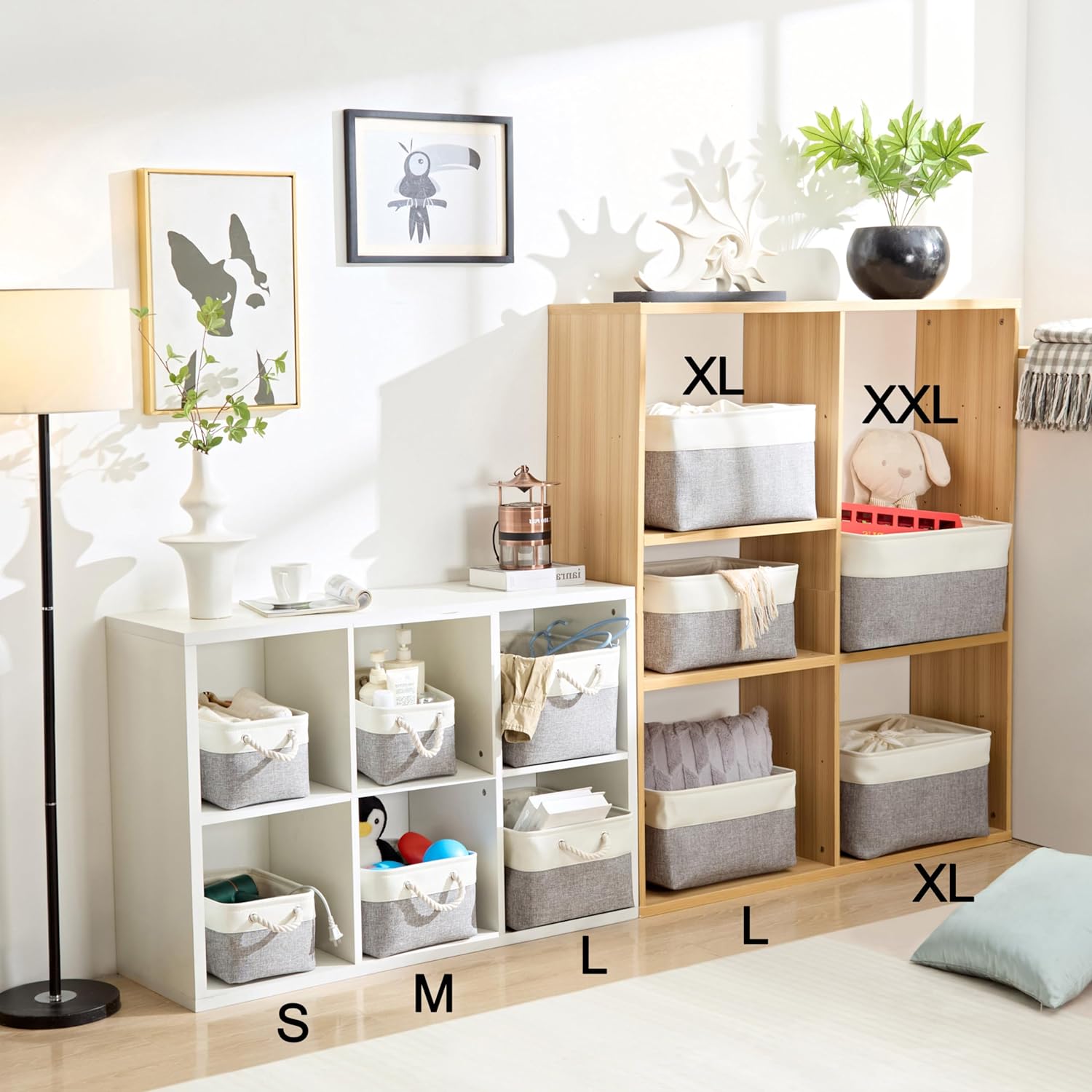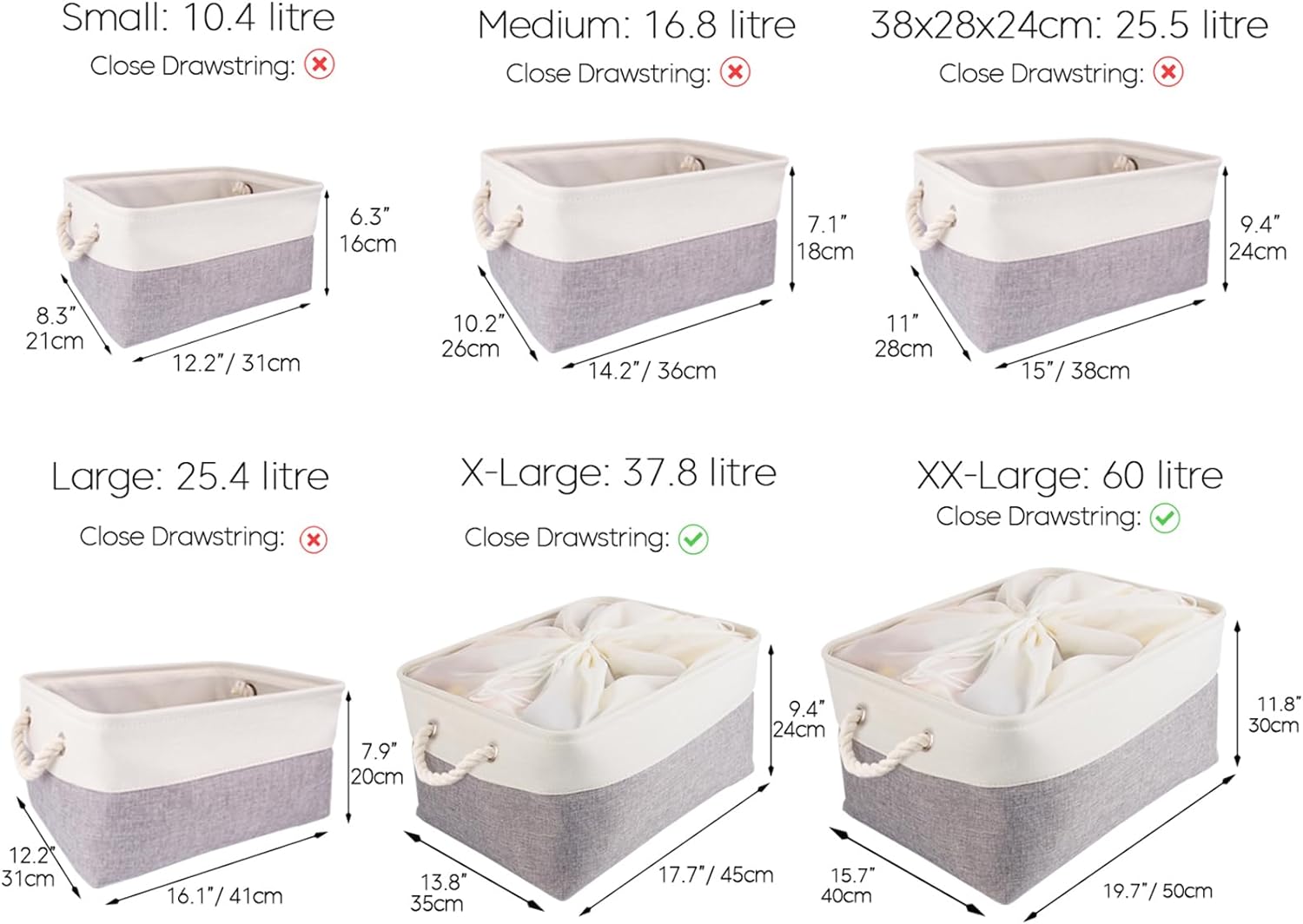 • ABMESSUNGEN: extra Grooss Aufbewahrungskörbe von 50 * 40 * 30 cm (L * B * H), Material: Leinen, Baumwolle, Polyester. Farbe: Weissgrau