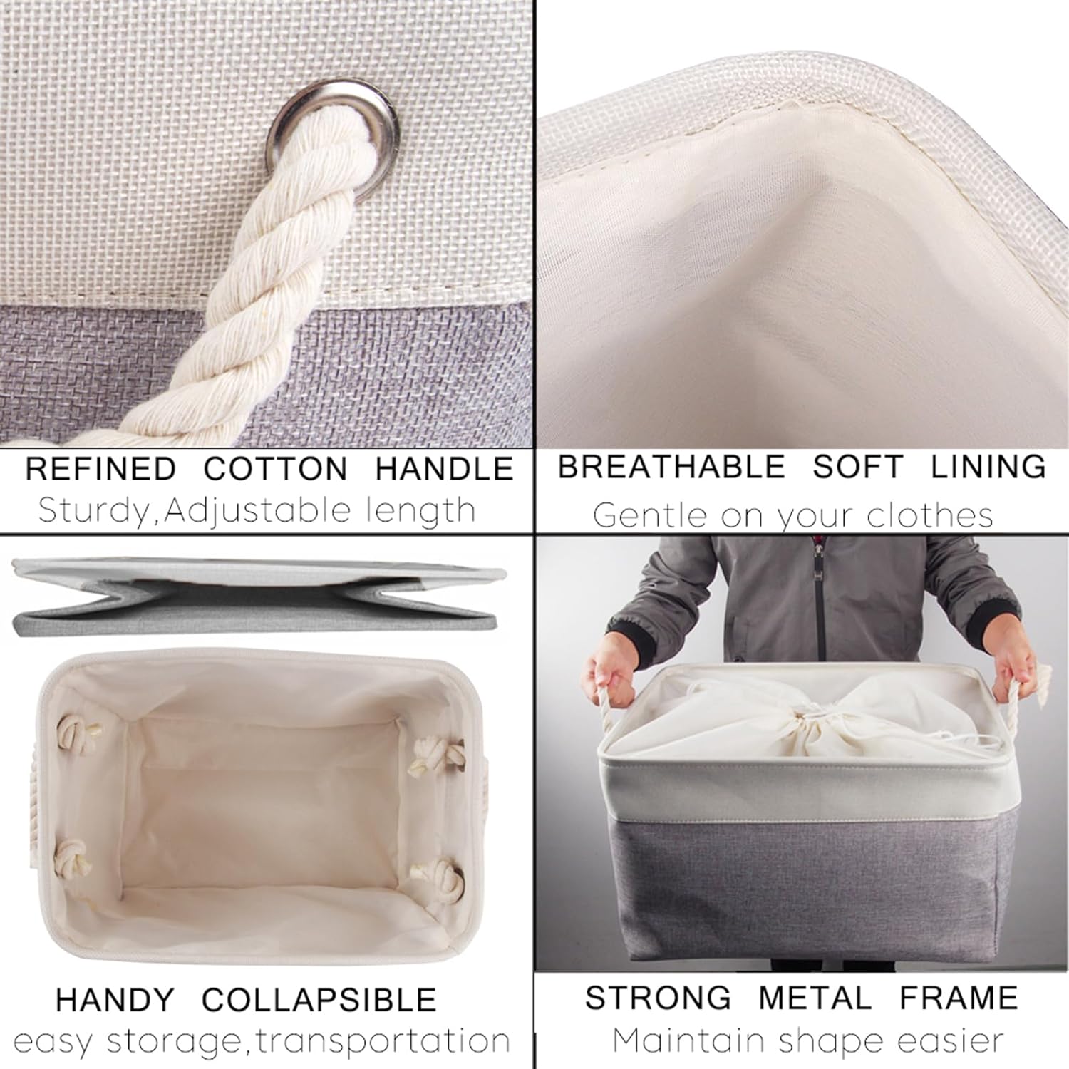 • EINFACH ZU BEDIENEN: Starker Metallrahmen um die Oberseite hält die Korbform, zwei geflochtene weiche Seilgriffe zum einfachen Ein- und Ausschieben aus dem Regal, Schrank, Schrank oder Kleiderschrank