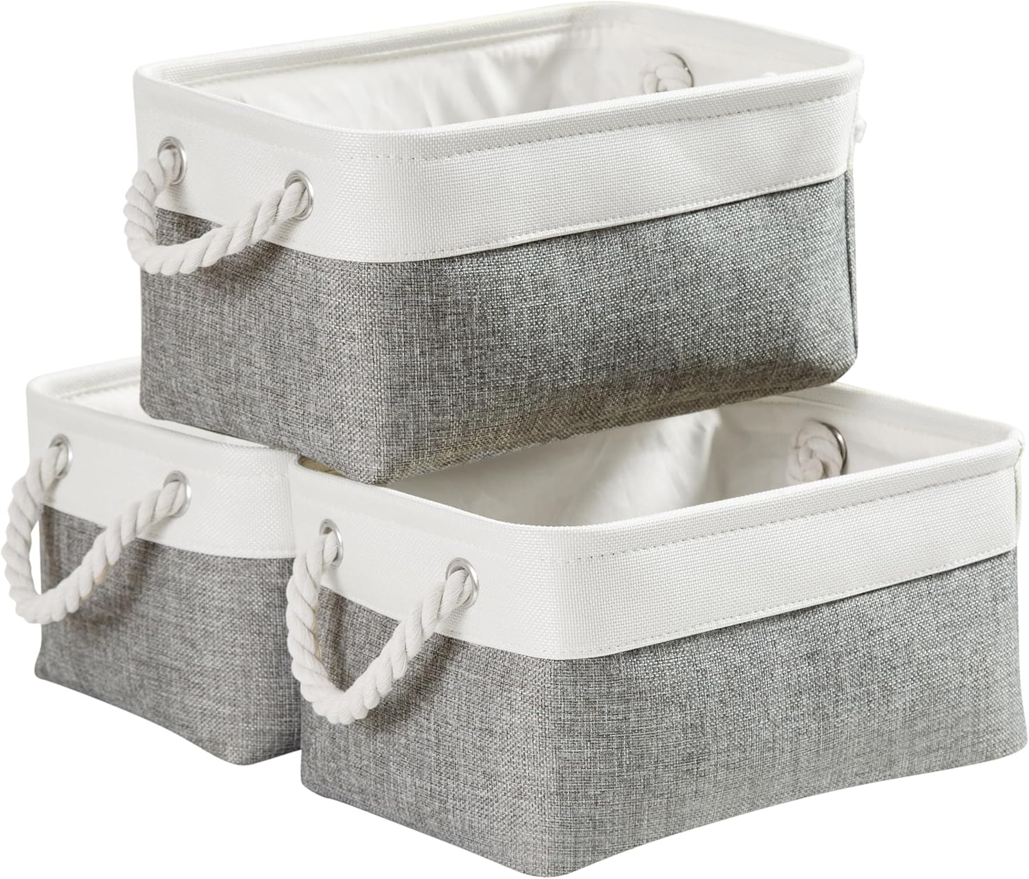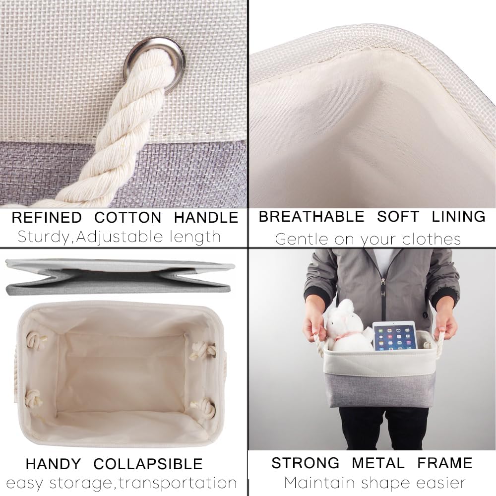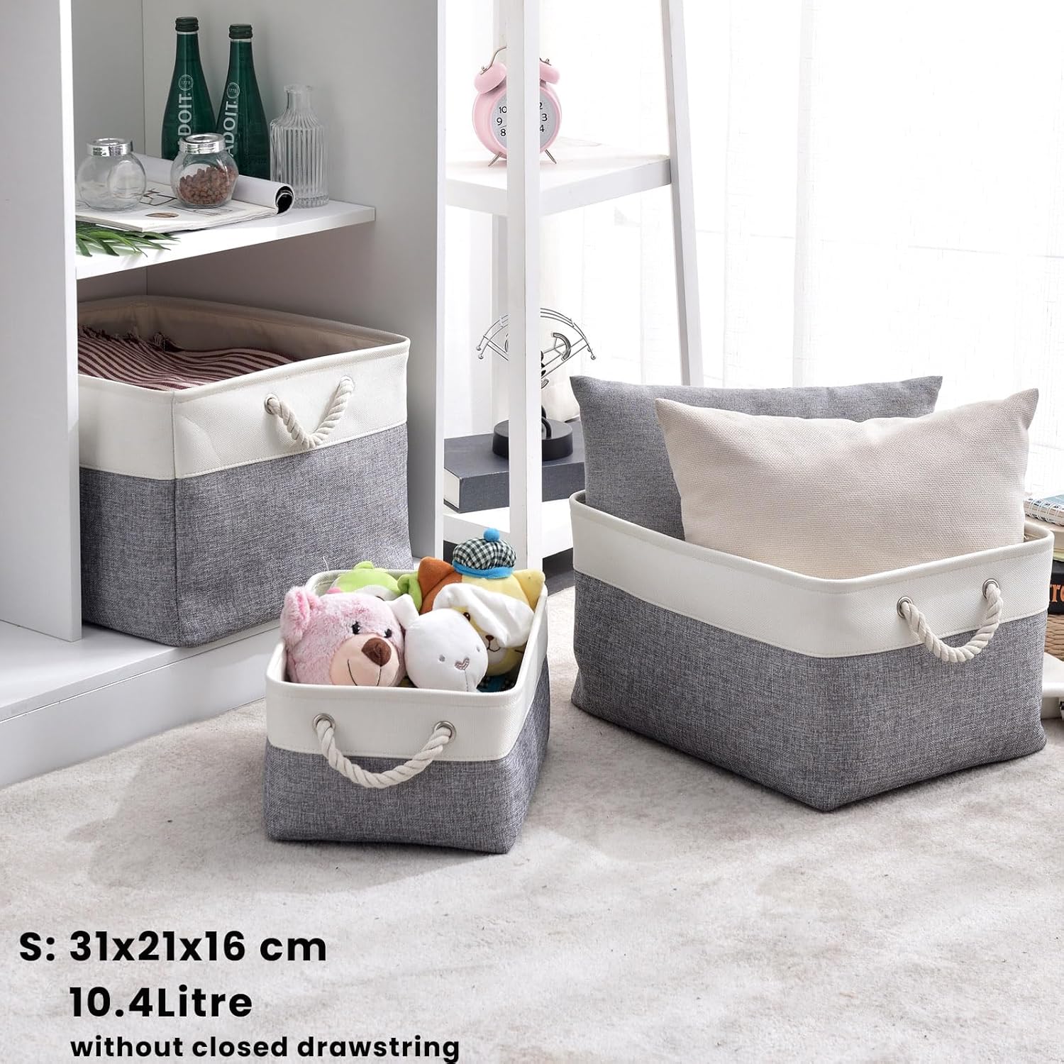 - ABMESSUNGEN: Kleine Aufbewahrungskörbe von 31 * 21 * 16 cm (L * B * H), Material: Leinen, Baumwolle, Polyester. Farbe: Weissgrau