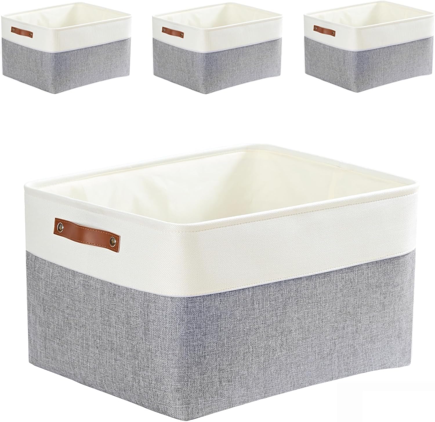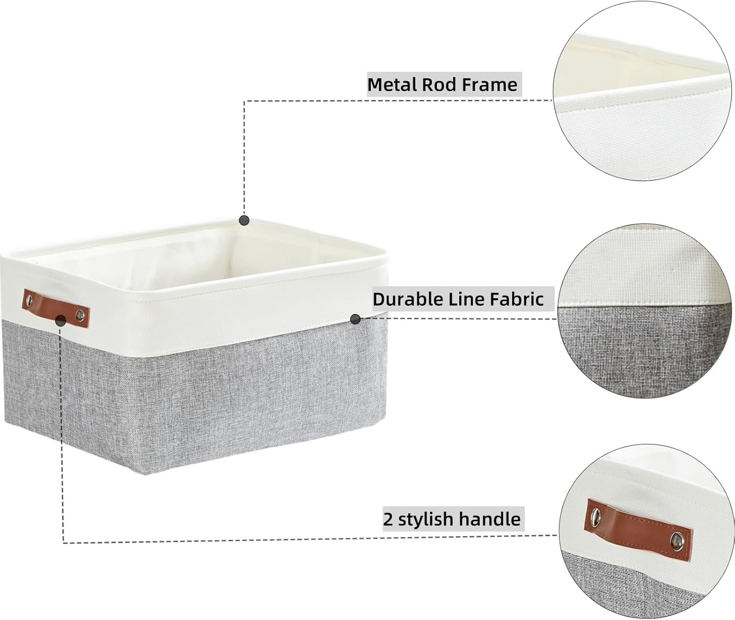- ABMESSUNGEN: Grooss Aufbewahrungskörbe von 41 * 31 * 20 cm (L * B * H), Material: Leinen, Baumwolle, Polyester. Farbe: Weissgrau