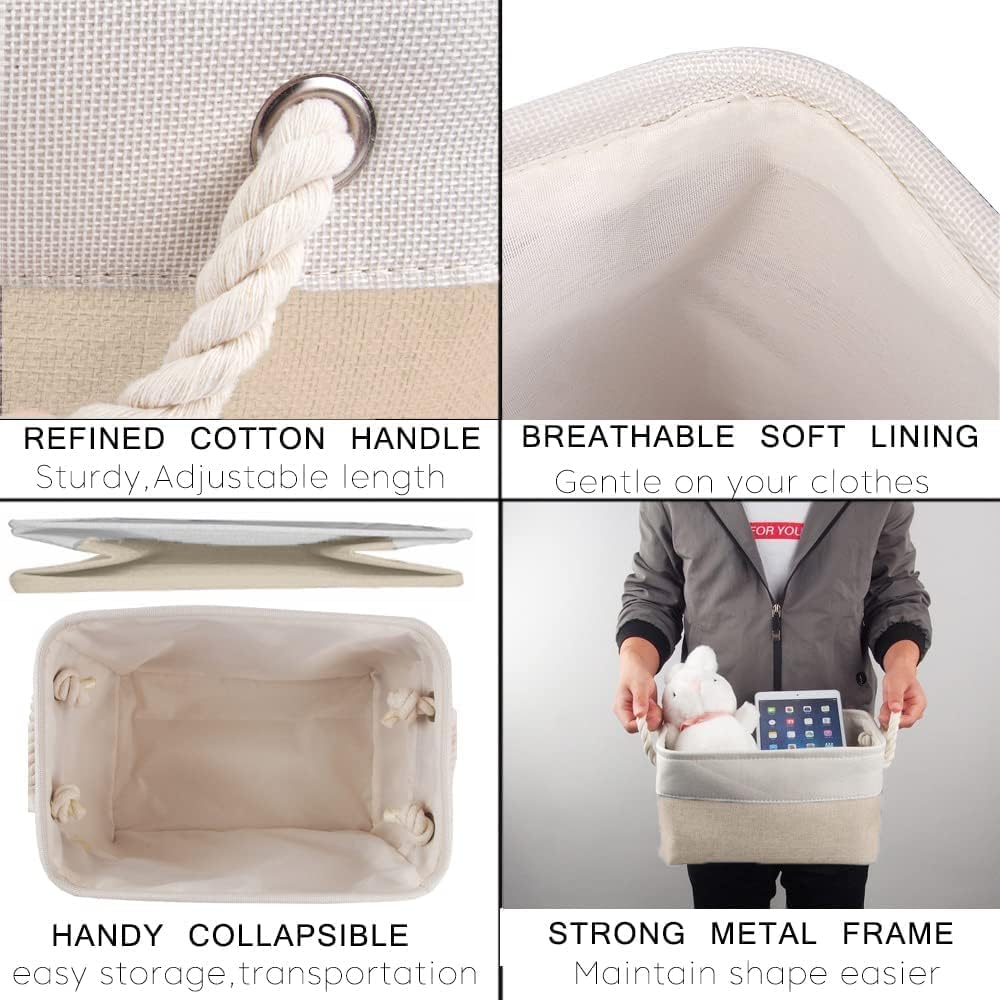 - ABMESSUNGEN: Aufbewahrungskörbe von 36 * 26 * 18 cm (L * B * H), Material: Leinen, Baumwolle, Polyester. Farbe: Khaki Weiss