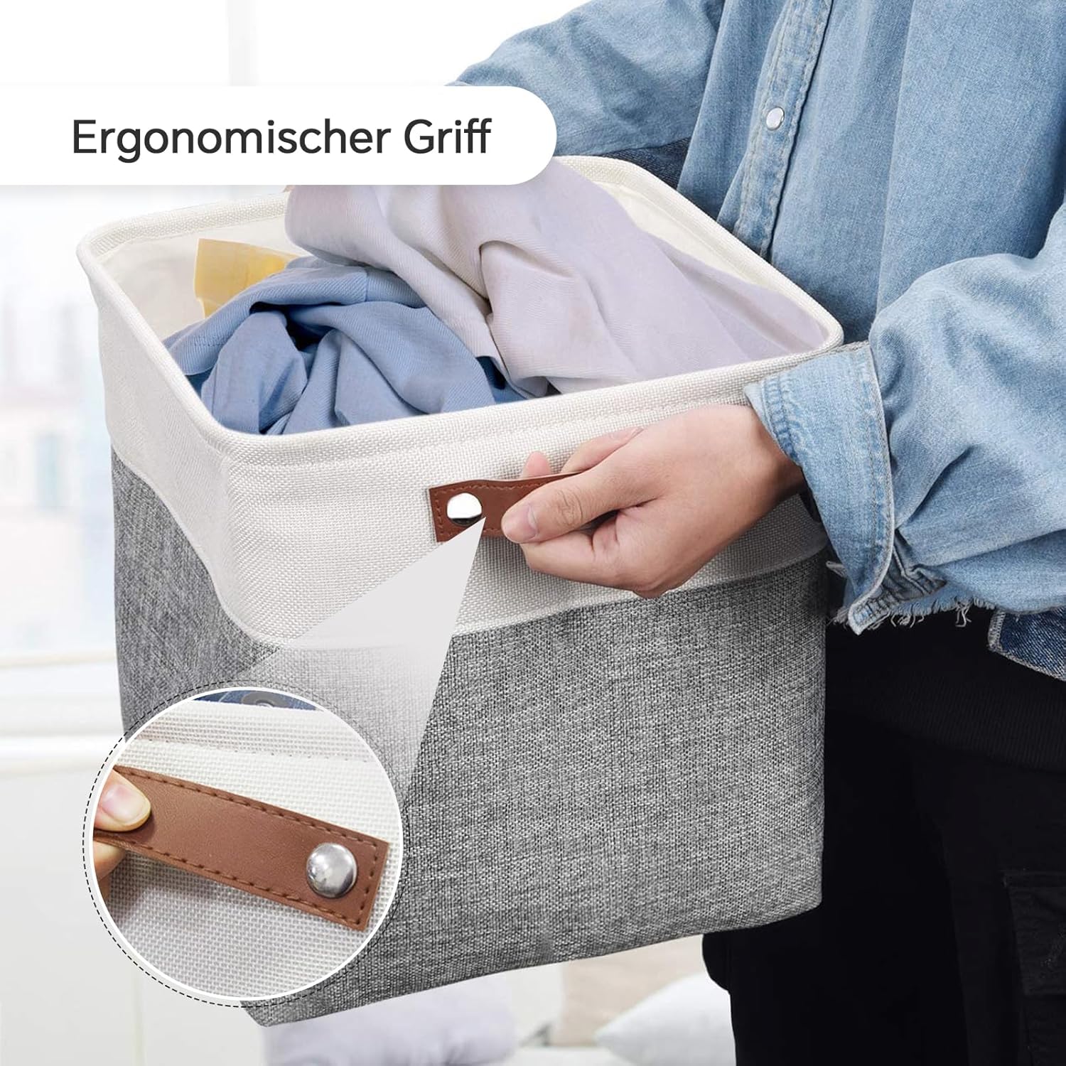 - [Stilvolles Design] Die äussere Schicht besteht aus Leinen mit einer Patchwork-Kombination aus Grau und Weiss. Dadurch sieht die Box stilvoll aus und lässt sich leicht an jeden Raum anpassen