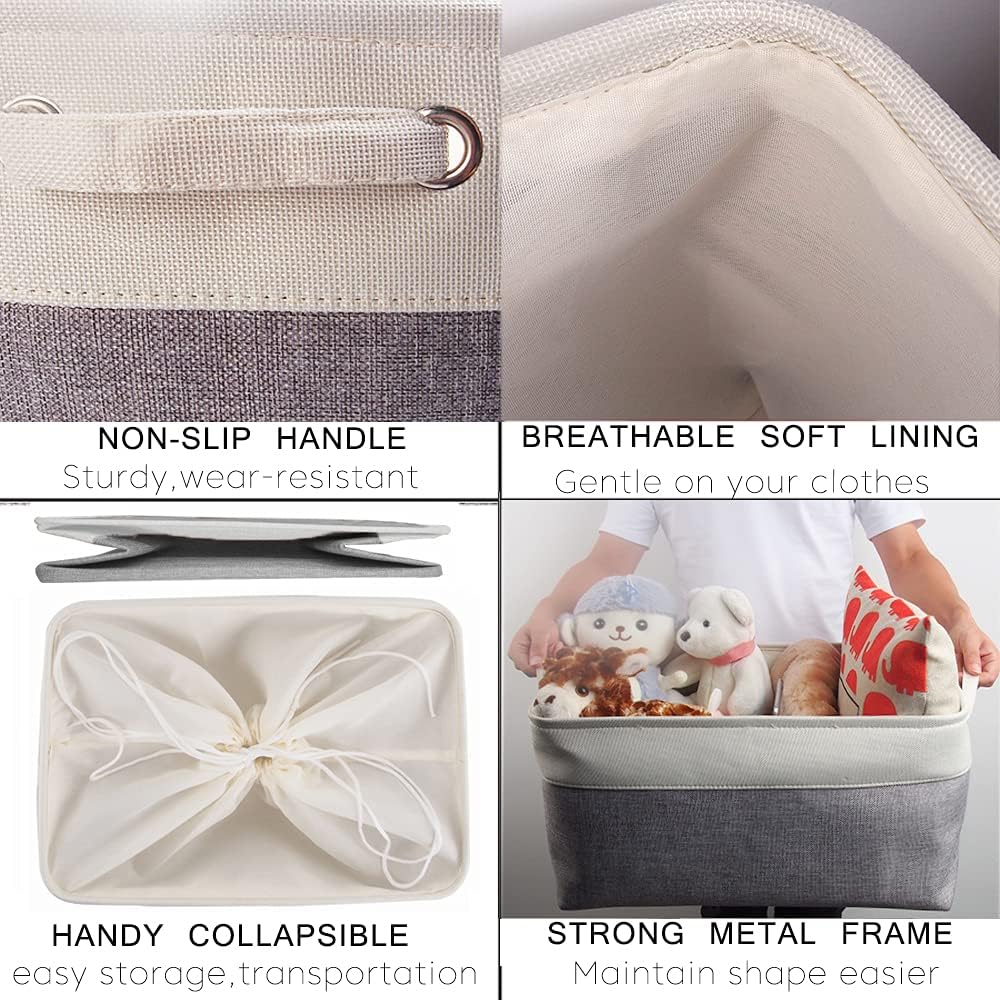 - Masse: extra gross Aufbewahrungskörbe von 19.7 (L) x 14.2 (W) x 9.8 (H) Zoll (50 x 36 x 25 cm), rechteckige Aufbewahrungsbox. Material: Leinen, Baumwolle, EVA, Polyester. Farbe: Weiss / Grau