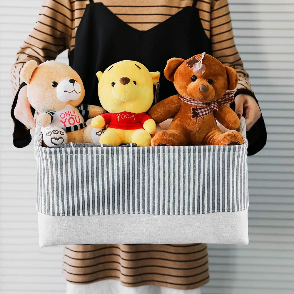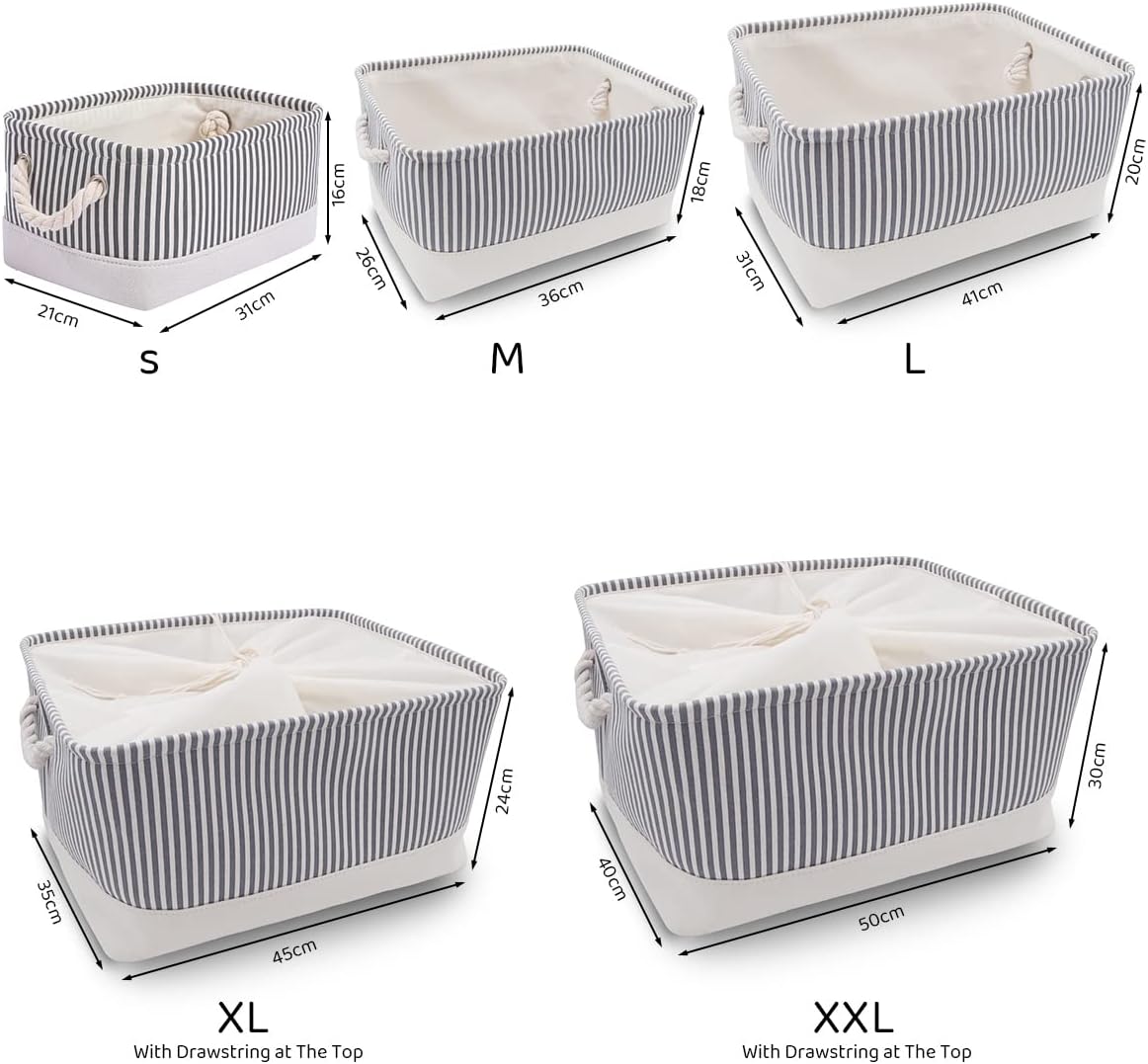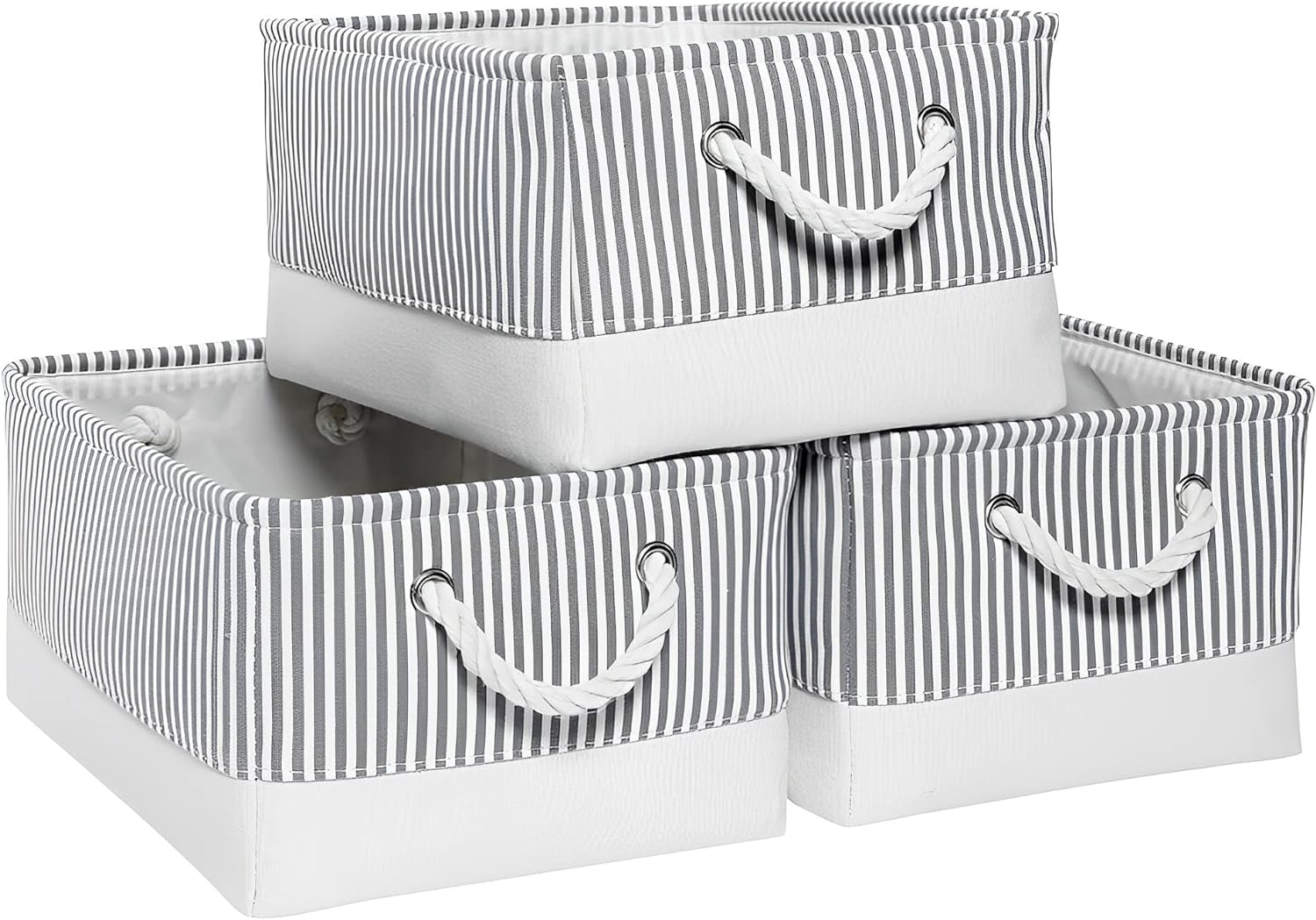 Mangata Faltbare Aufbewahrungsboxen, grosse Stoffkörbe, 3er-Pack (Grauer Streifen, Gross) L Grauer S