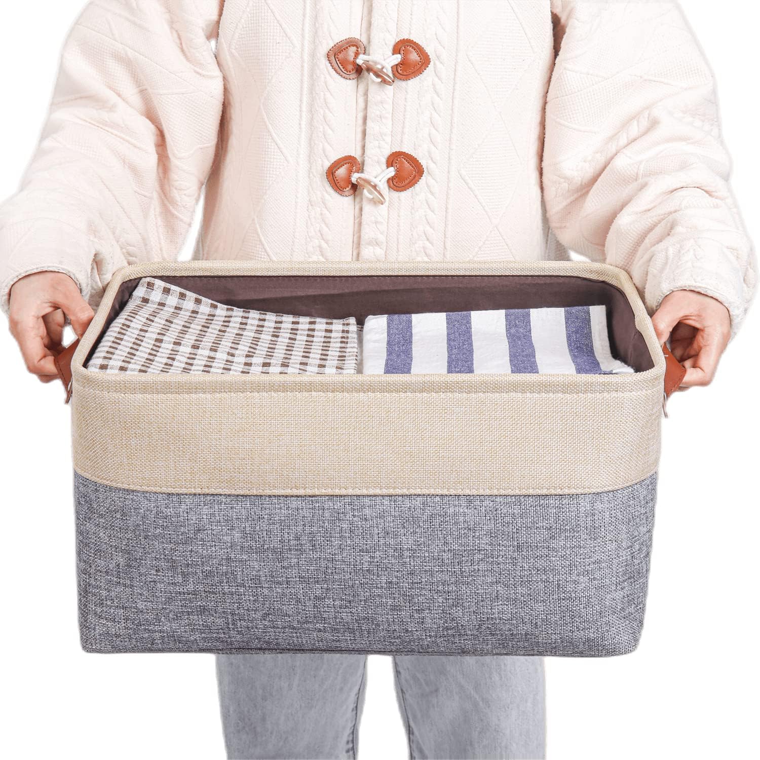 - Stabiler Ledergriff: Die Aufbewahrungsbox wird mit zwei Ledergriffen geliefert, die aus Leder und Nieten hergestellt sind. Im Gegensatz zu anderen stoff korb ist es so robust, dass eine Menge Sachen aufgeladen werden kann, und einfach zu transportieren