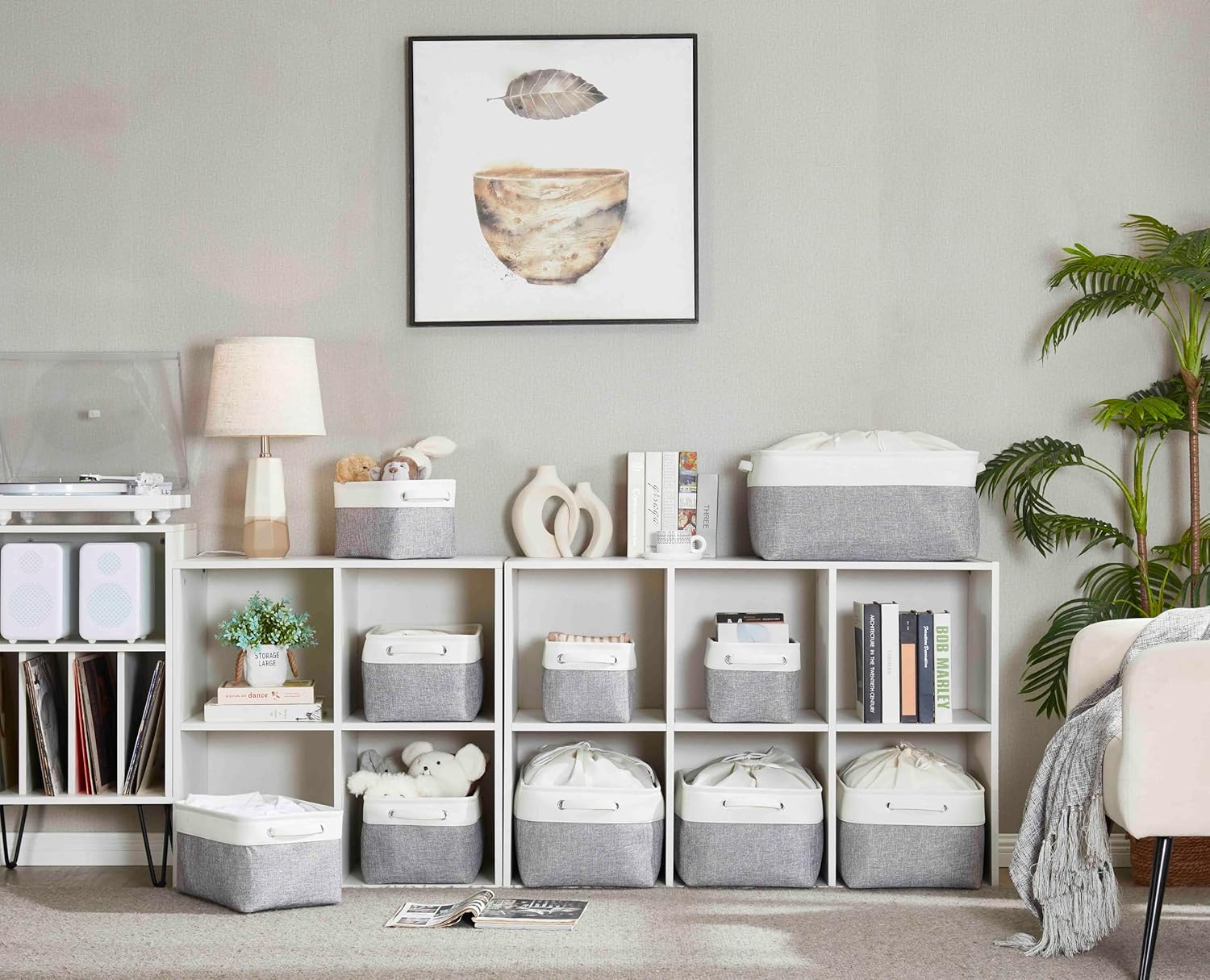 - Modische Boxen: Diese dekorativen grauen Aufbewahrungsboxen bieten ein zweifarbig gemustertes Design und verleihen Ihrem Zuhause einen Hauch schicker Eleganz! Wenn Sie Ihre Haushaltsgegenstände ordentlich aufbewahren, müssen Sie die andere langweilige