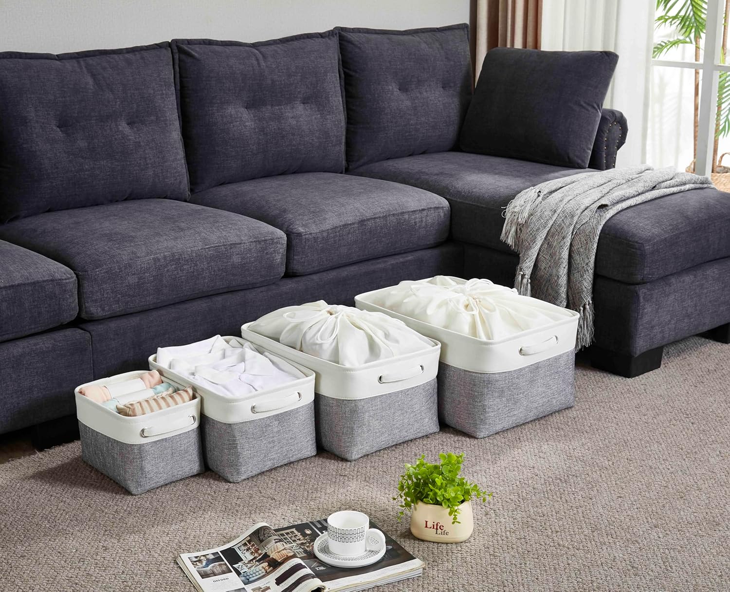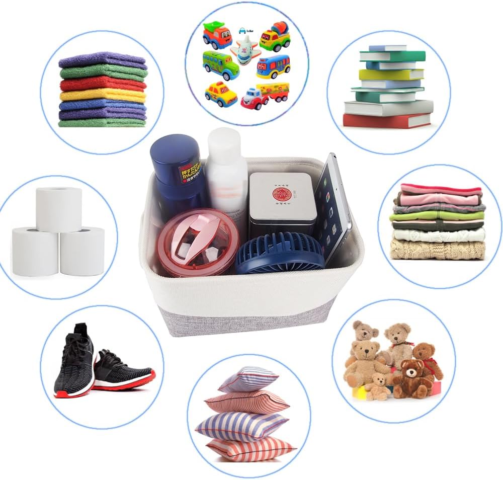 - Masse: klein Aufbewahrungskörbe mit 26 x 20 x 18.5 cm, rechteckige Aufbewahrungsbox aus Segeltuch. Material: Leinen, Baumwolle, Polyester. Farbe: weiss grau