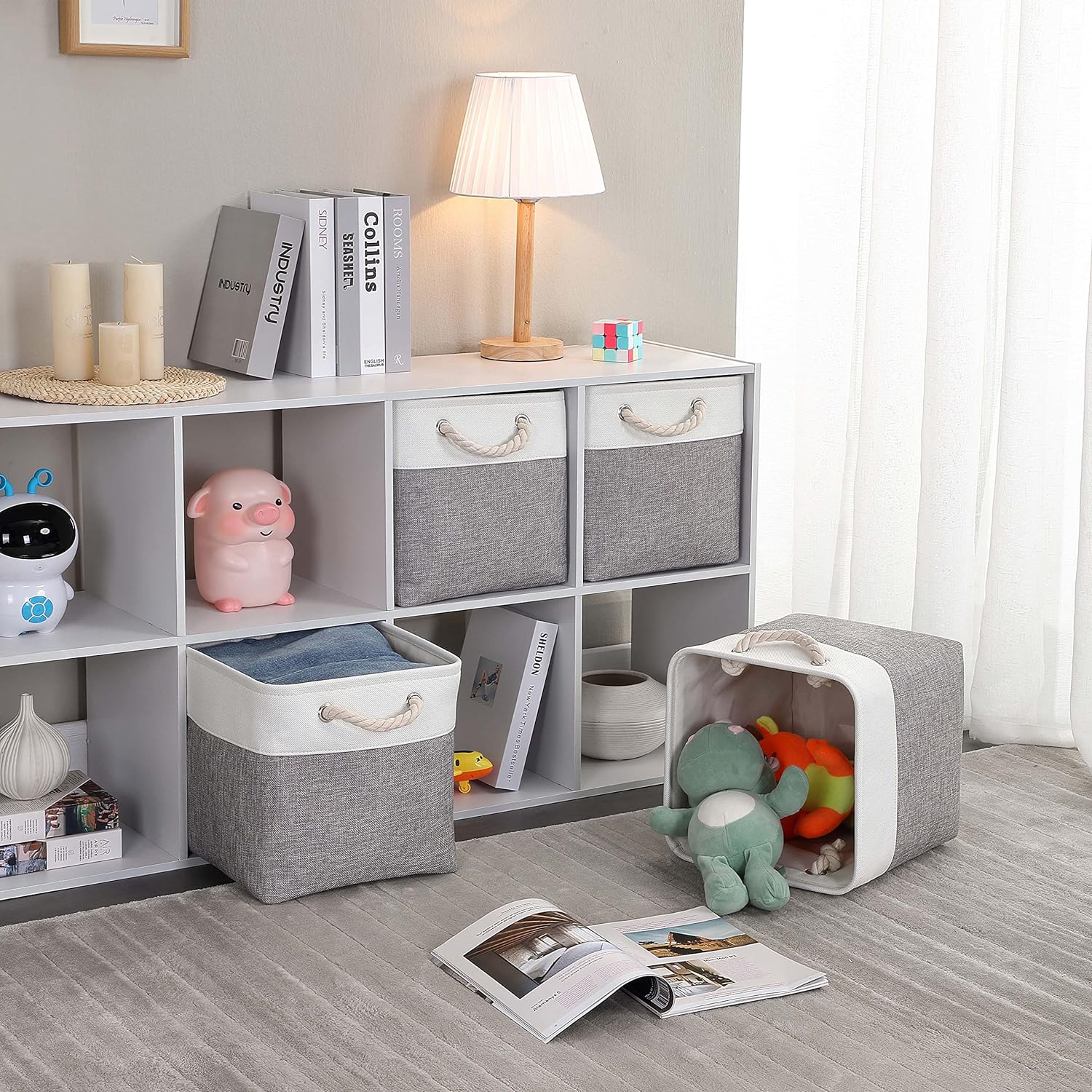 • Gutes Design: stabiler Metallstabrahmen um die Oberseite hält die Korbform, geflochtene weiche Baumwollseilgriffe zum einfachen Einschieben aus dem Regal, Schrank, Schrank oder Kleiderschrank