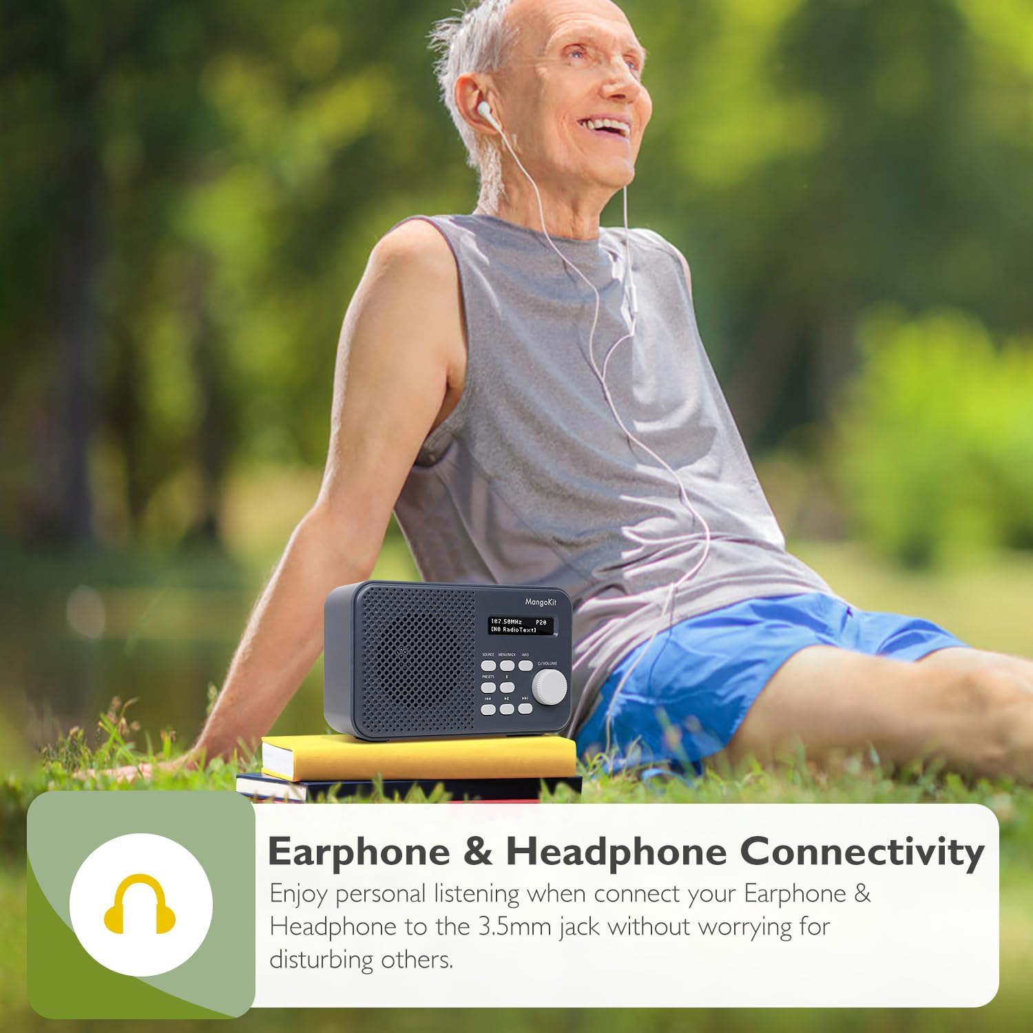 - 【Portables DAB-Radio für privates Hören】- Mit dem Kopfhörer, der in die 3,5-mm-Buchse auf der Rückseite des MD2 eingesteckt wird, können Sie Musik hören, ohne die anderen zu stören. Die 360 Grad drehbare Teleskopantenne bietet Ihnen die beste