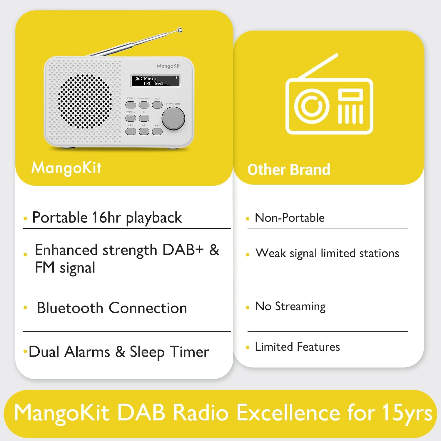 MangoKit MD2 DAB Radio mit Bluetooth,DAB Plus Radio,Digitalradio,UKW Radio,Tragbares Dab Radio,Klein