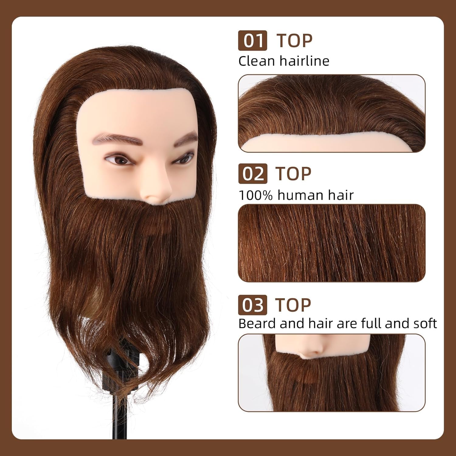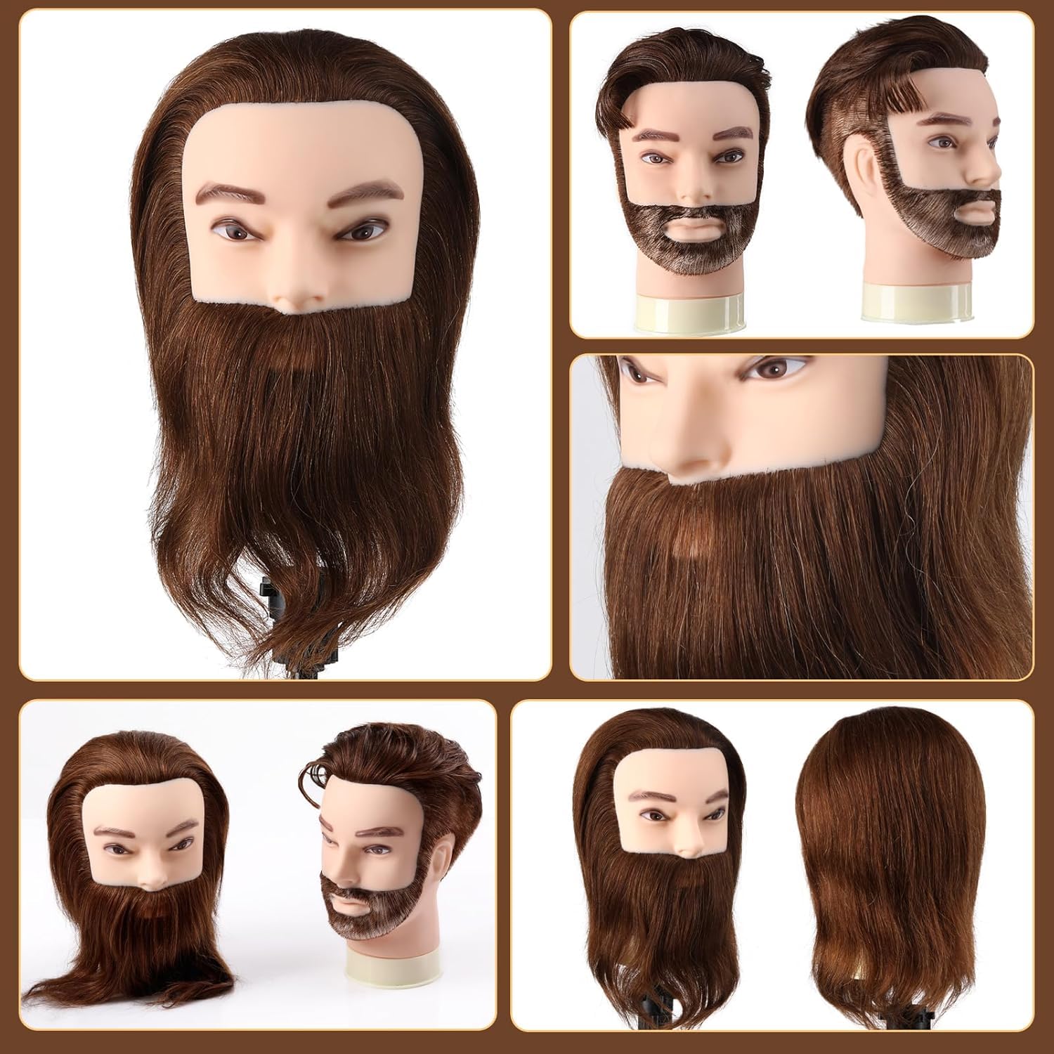 - ► Männliche Mannequin Kopf Material: ◄ Haar und Bart ist 100% menschliches Haar und Haut ist PVC; Farbe: braun. Die Verarbeitungstechnologie ist ausgereift, und jeder Schaufensterkopf wurde streng gewaschen und desinfiziert.