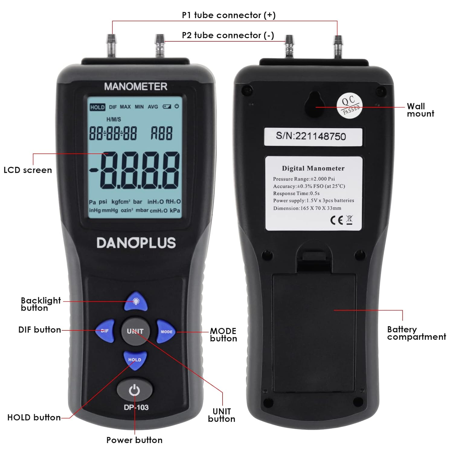 • ✅【Data Record】This Manometer would be record 99pcs data with time stamp, which help to easier to analyze the data