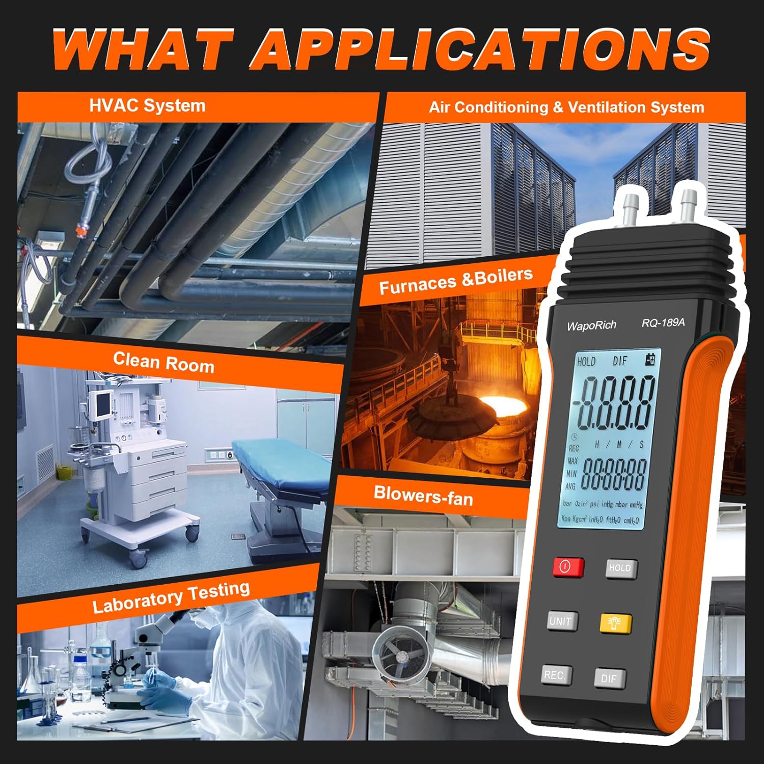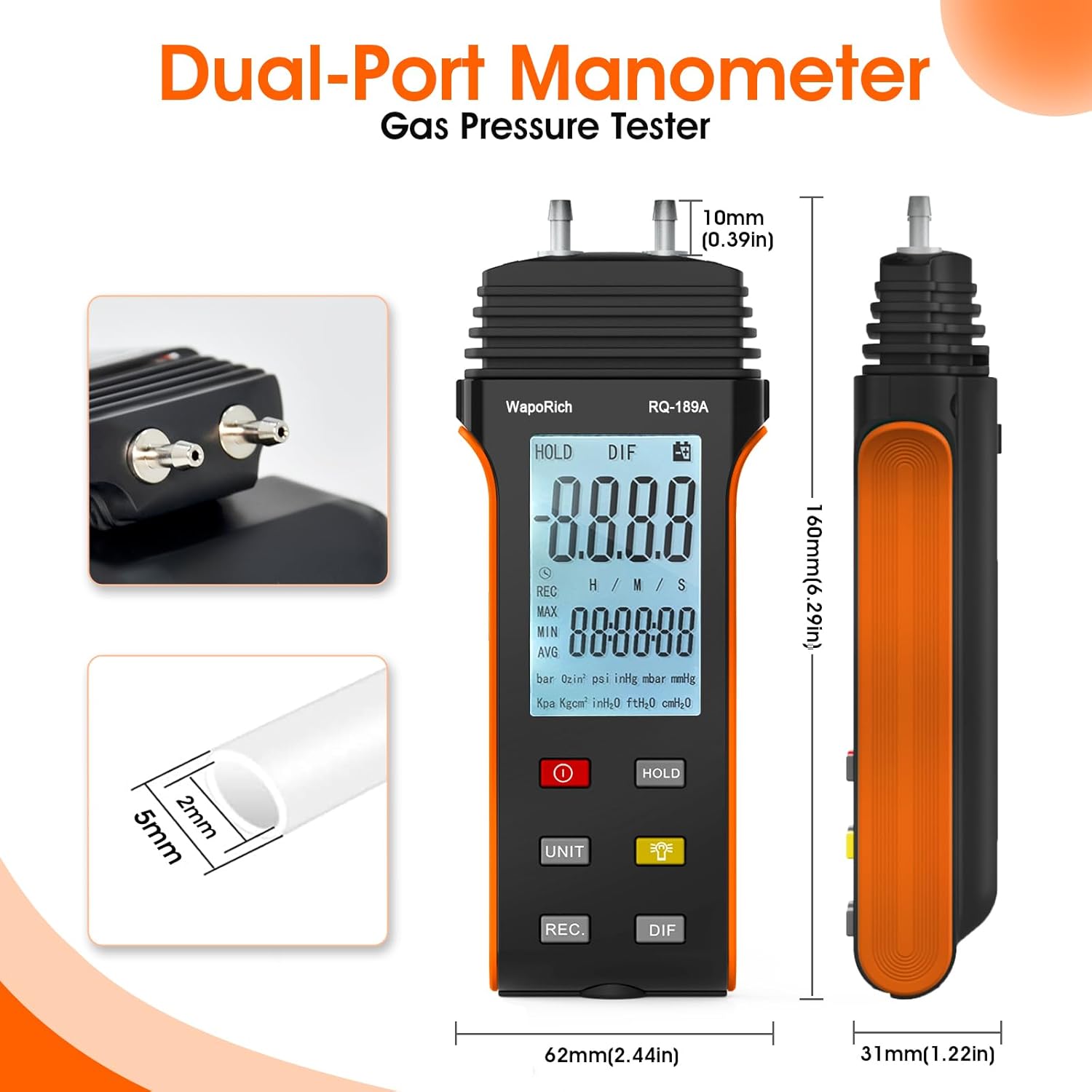 • 【Dual Port Design】Gasdruckprüfgerät mit zwei Rohrverbindern (3.18mm Durchmesser), kann statischen Druck (positiv/negativ) und Differenzgasdruckniveaus genau messen. RQ-189A kommt mit 4pcs flexiblem Rohr, 1pcs 1/8 Gewindeadapter, tragbarem Fall und