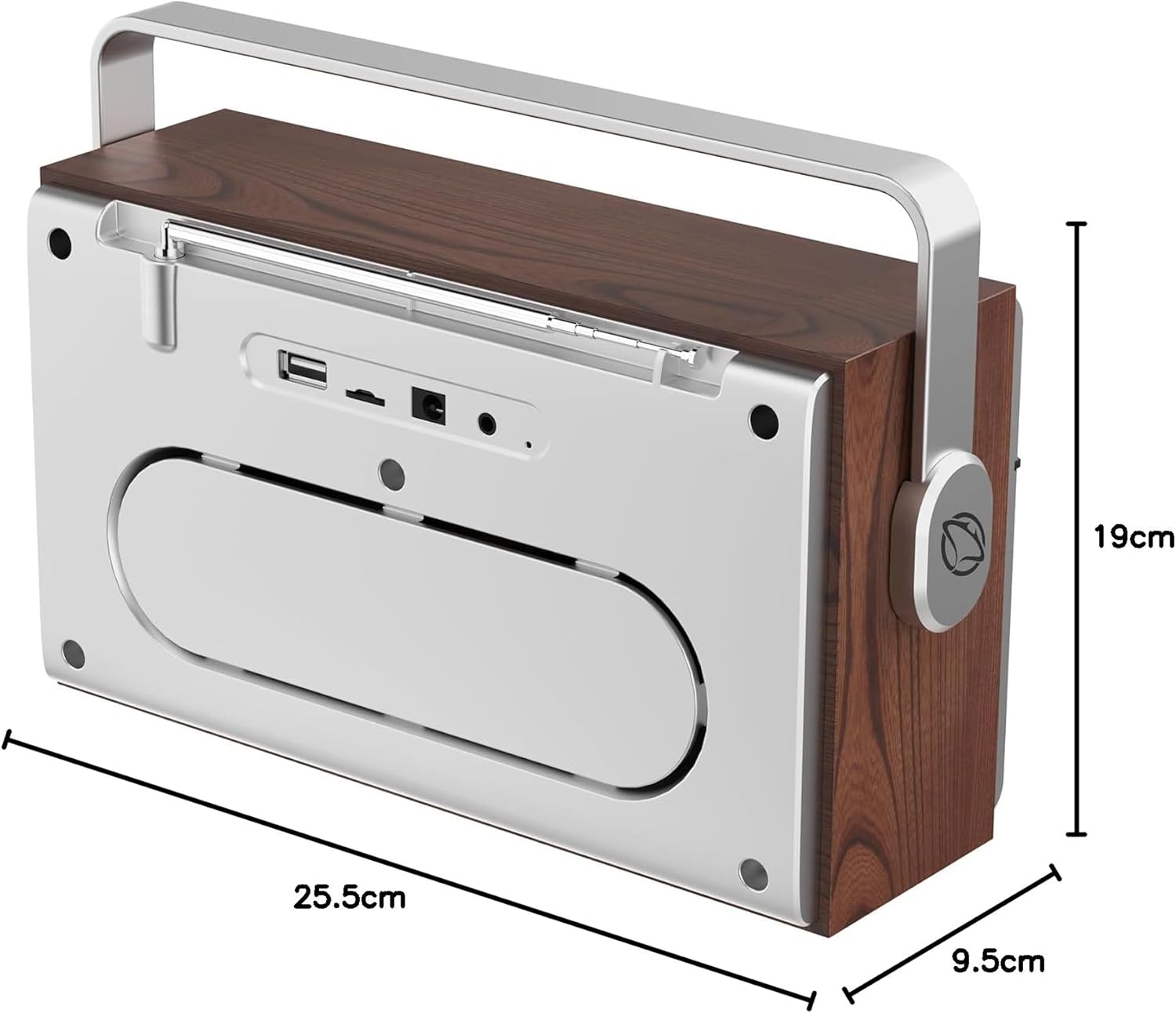 - Tragbarer Lautsprecher: Dank der Bluetooth 5.0-Technologie können Sie Ihr Smartphone oder Ihren Laptop anschliessen und das Radio als tragbaren Lautsprecher verwenden, der Ihre Lieblingsmusik in ausgezeichneter Klangqualität wiedergibt