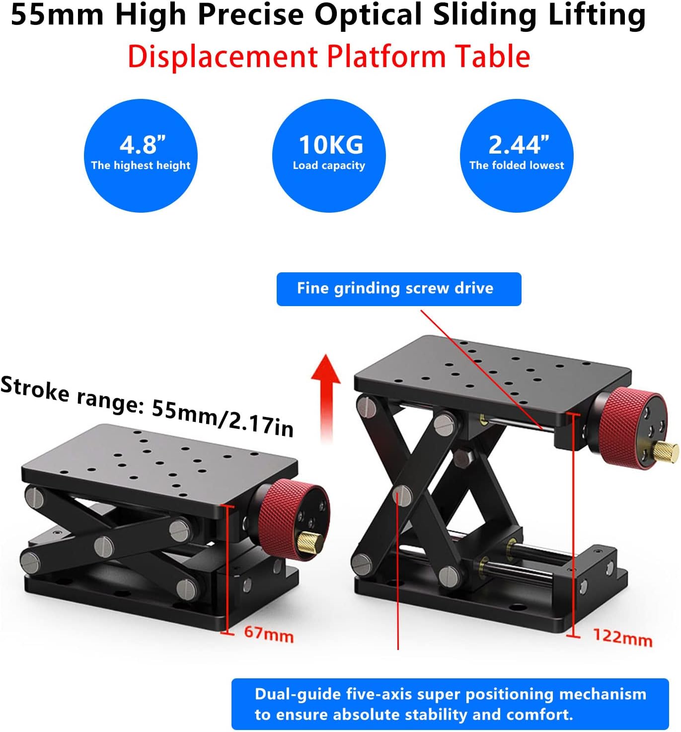 - Hervorragende Leistung: Hubbereich: 55 mm, Tragkraft: 10 kg. Für grossen Hub, nicht quantitativ, grosse Lastanpassungsbewegungen. Die Scherenstruktur wird übernommen, und jedes Scharnier ist mit tiefen Gewindeschrauben verbunden, um die Stabilität der