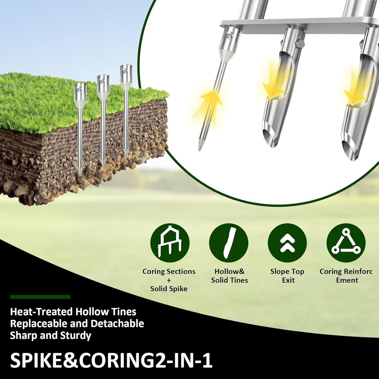 - NEUES 2-in-1-DESIGN: für die gesamte Lebenszykluspflege. Entworfen mit 3 hohlen Zinken, entfernt dieser Gartenpfropfenbelüfter effizient Bodenstopfen und verhindert gleichzeitig Verstopfungen während des Gebrauchs und schafft grössere und tiefere