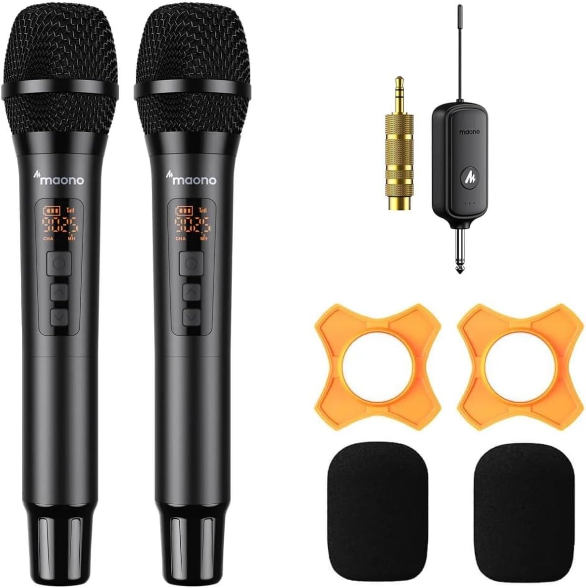 Maono WM760 A2 - Drahtloses Mikrofonsystem mit 2 Mikrofonen und Empfänger, schwarz
