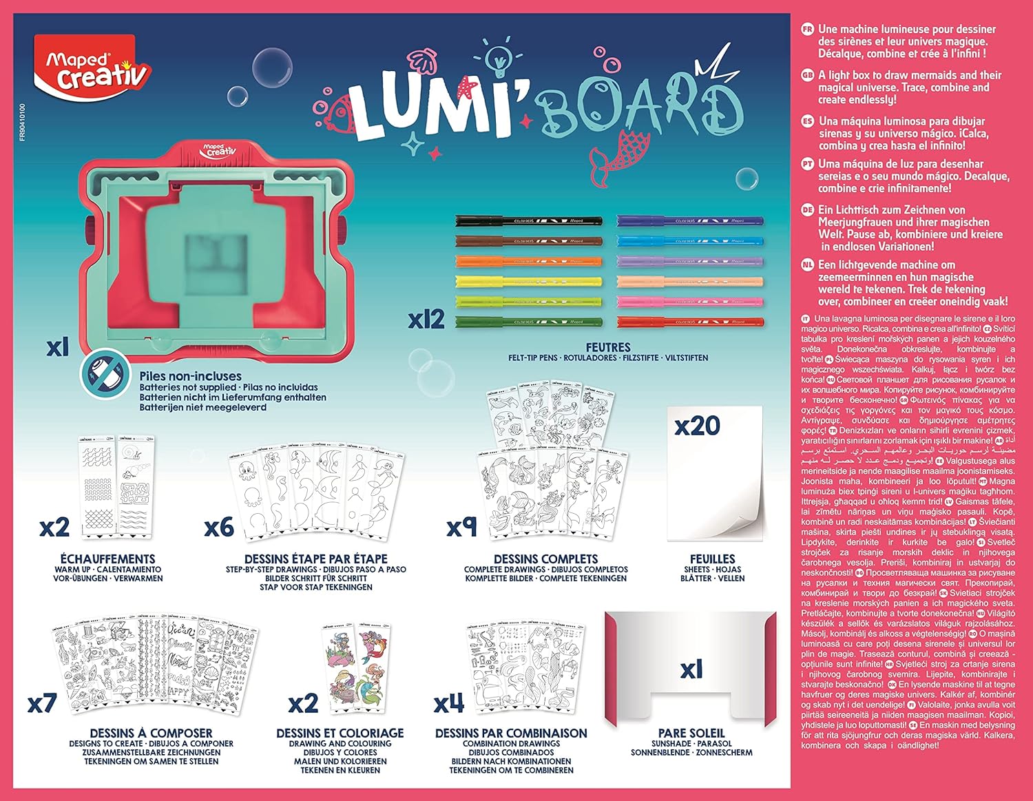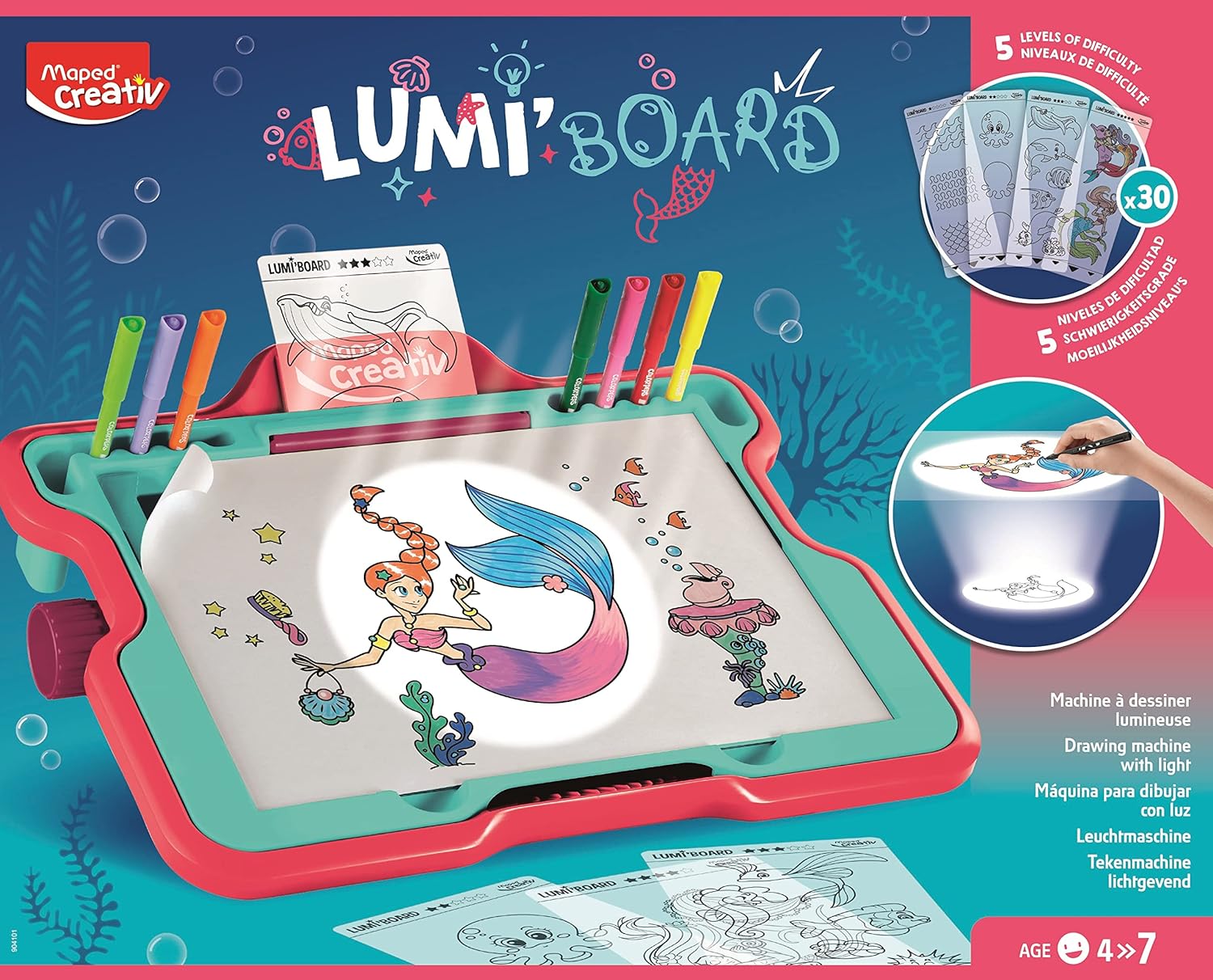 - Meerjungfrauen-Zeichnungsmaschine: Zeichnen lernen mit Spass dank der Lumi'Board Zeichenmaschine mit Lichtprojektion. Mit dem Lumiboard "Die Welt der Meerjungfrauen" tauchen Sie ein in die verzauberte und wunderbare Welt der Wasserwelt