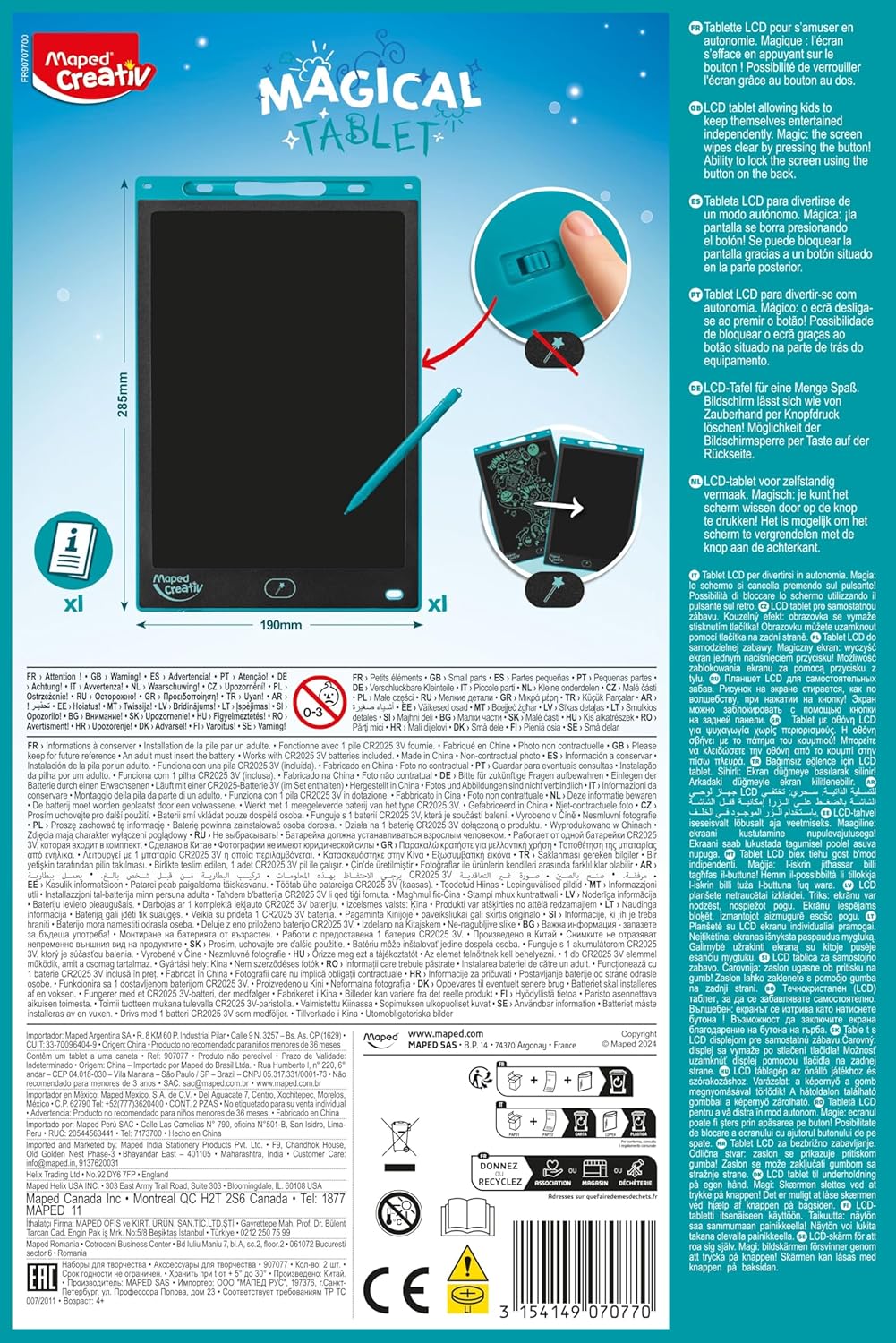 - Zeichnen Sie endlos: Dieses neue Zeichentablett 12 Zoll Maped Magical Board Maxi erweitert die Grenzen Ihrer Kreativität noch weiter. Der innovative Stift ermöglicht das Zeichnen, aber auch das Halten des Tablets in vertikaler Position. Praktisch zum