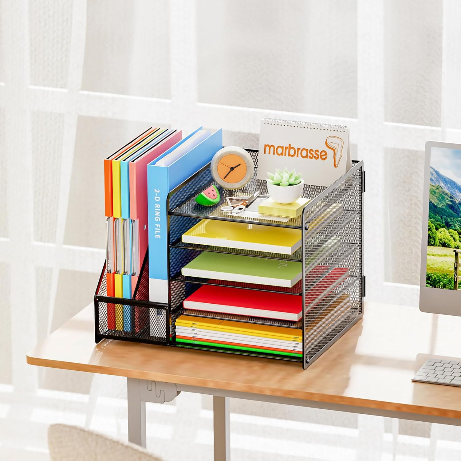 Marbrasse Schreibtisch Organizer mit Aktenhalter,5stöckig Papier-Briefablage,Netz-Schreibtisch-Organ