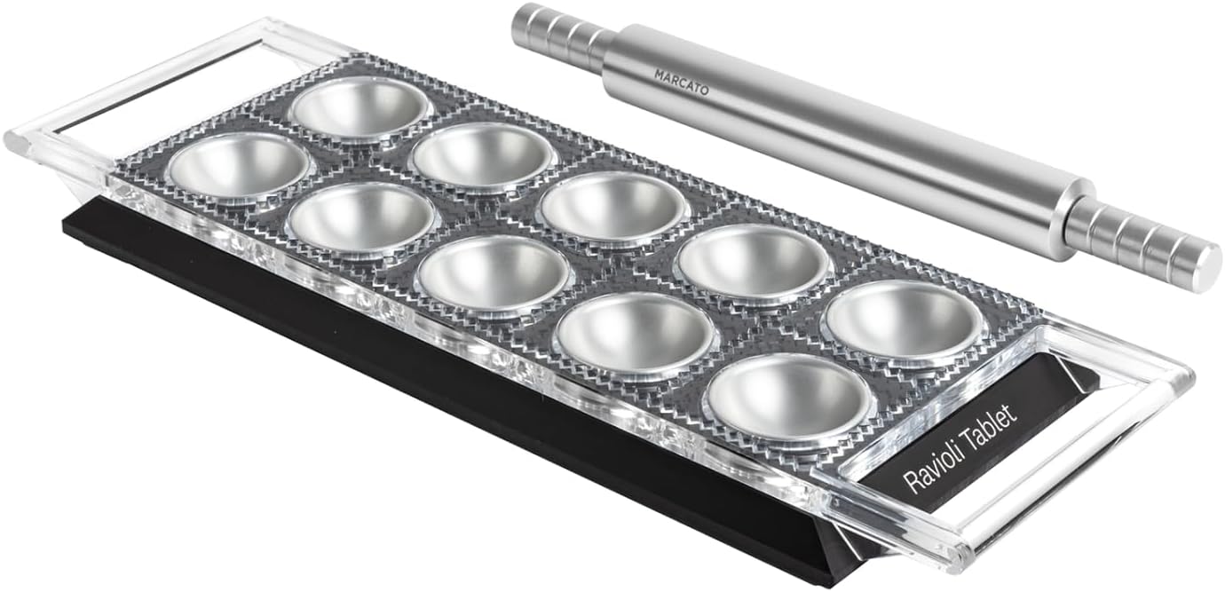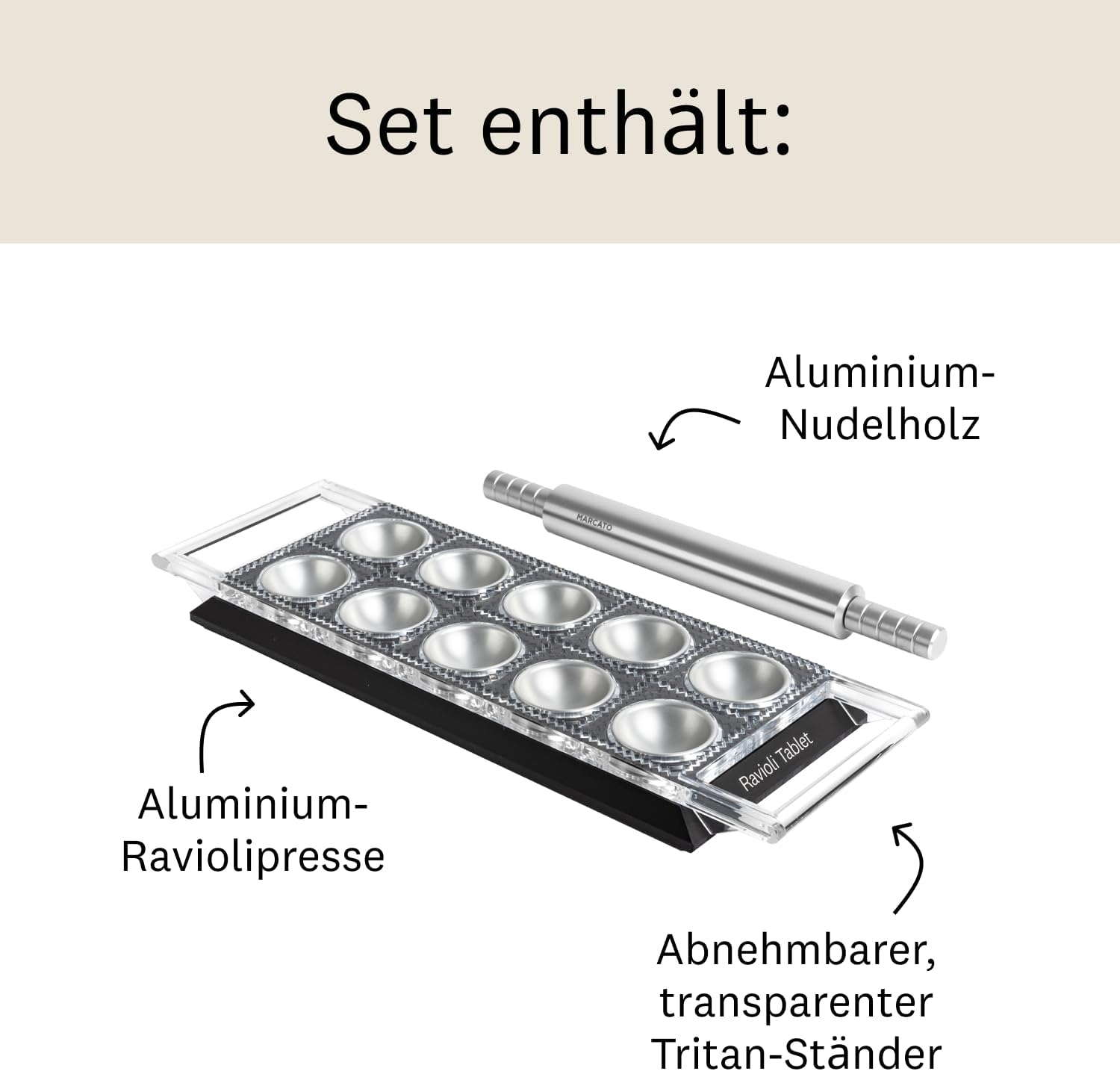 - es können mit dem Tablet 10 Ravioli auf einmal geschnitten werden