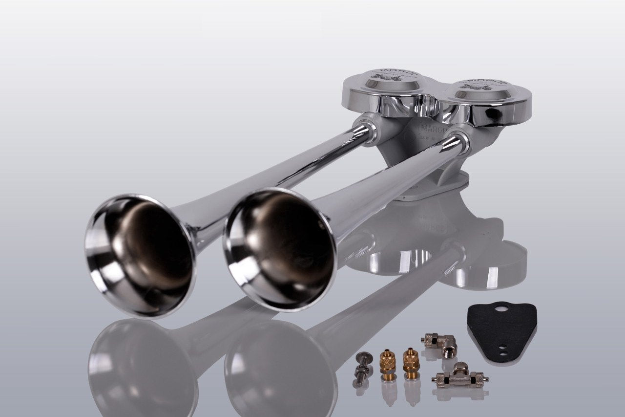 - LKW Druckluft Doppelhorn 38cm und 42cm lang + Magnetventil 24 Volt inklusive Anschlussmaterial
