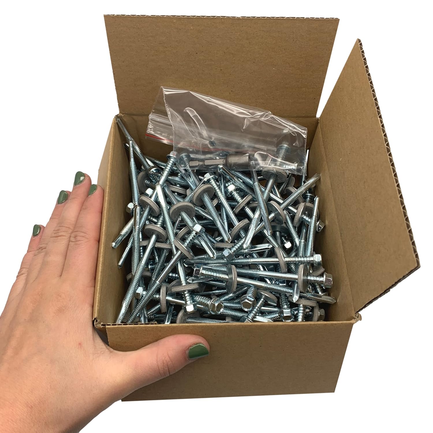 - ✔️ Sechskantschrauben Selbstbohrende Spitze Stahlscheiben mit EPDM (Durable Rubber) Diese Schrauben werden zur Befestigung von Sandwichplatten in Metallkonstruktionen verwendet. Unterlegscheibendurchmesser beträgt 19 mm. Bohrleistung bis 12 mm