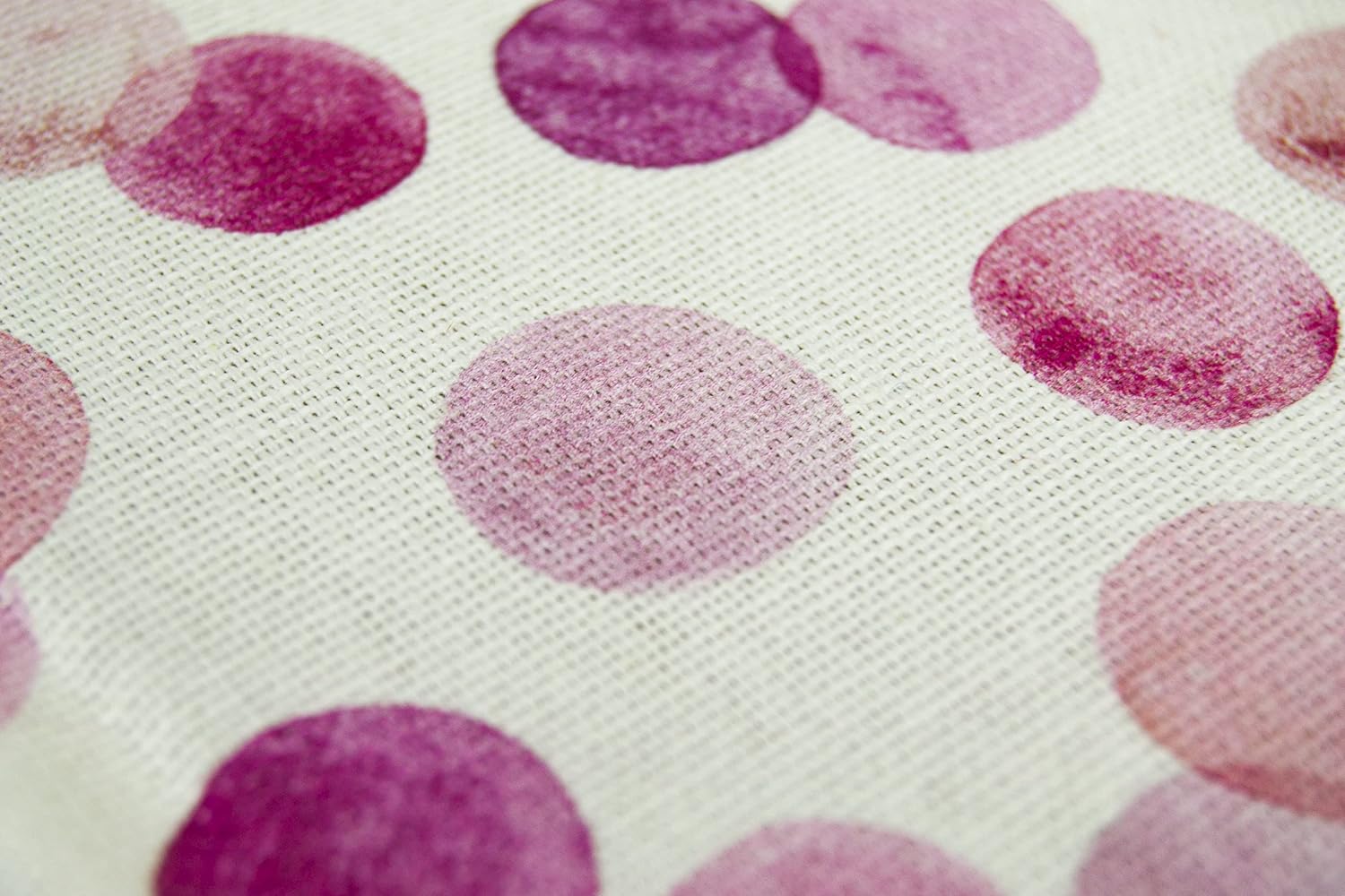 - Einband aus Stoff mit fuchsiafarbenen Punkten.