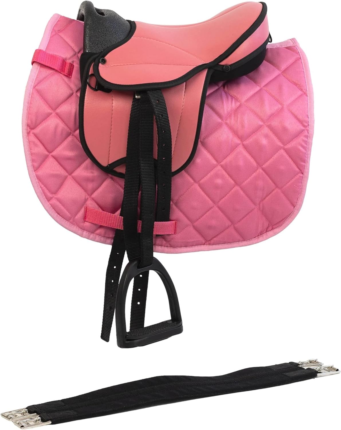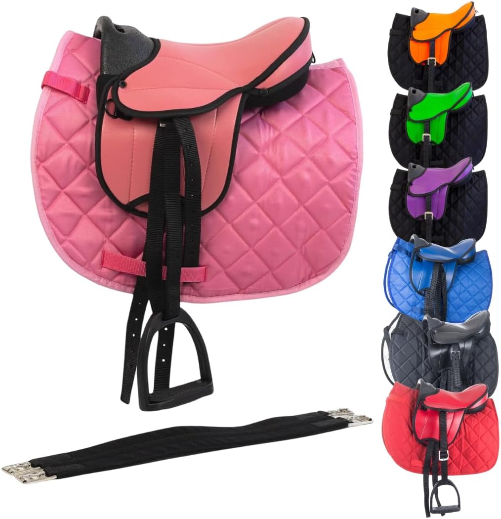- MAssE: Geeignet für Pferde mit einem Umfang von 100 cm bis 140 cm - Rückenlänge Schabracke ca. 45 cm, Länge Sattelgurt 60 cm, Länge Steigbügelriemen 100 cm, Trittfläche Steigbügels 11 cm