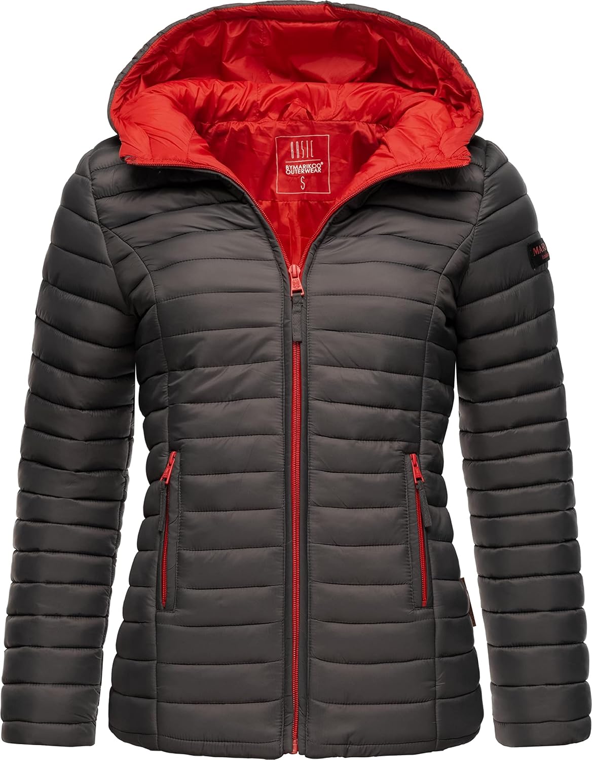 MARIKOO Damen leichte Übergangsjacke Steppjacke mit Kapuze Asraa XS-3XL XS Anthracite, XS Anthracite
