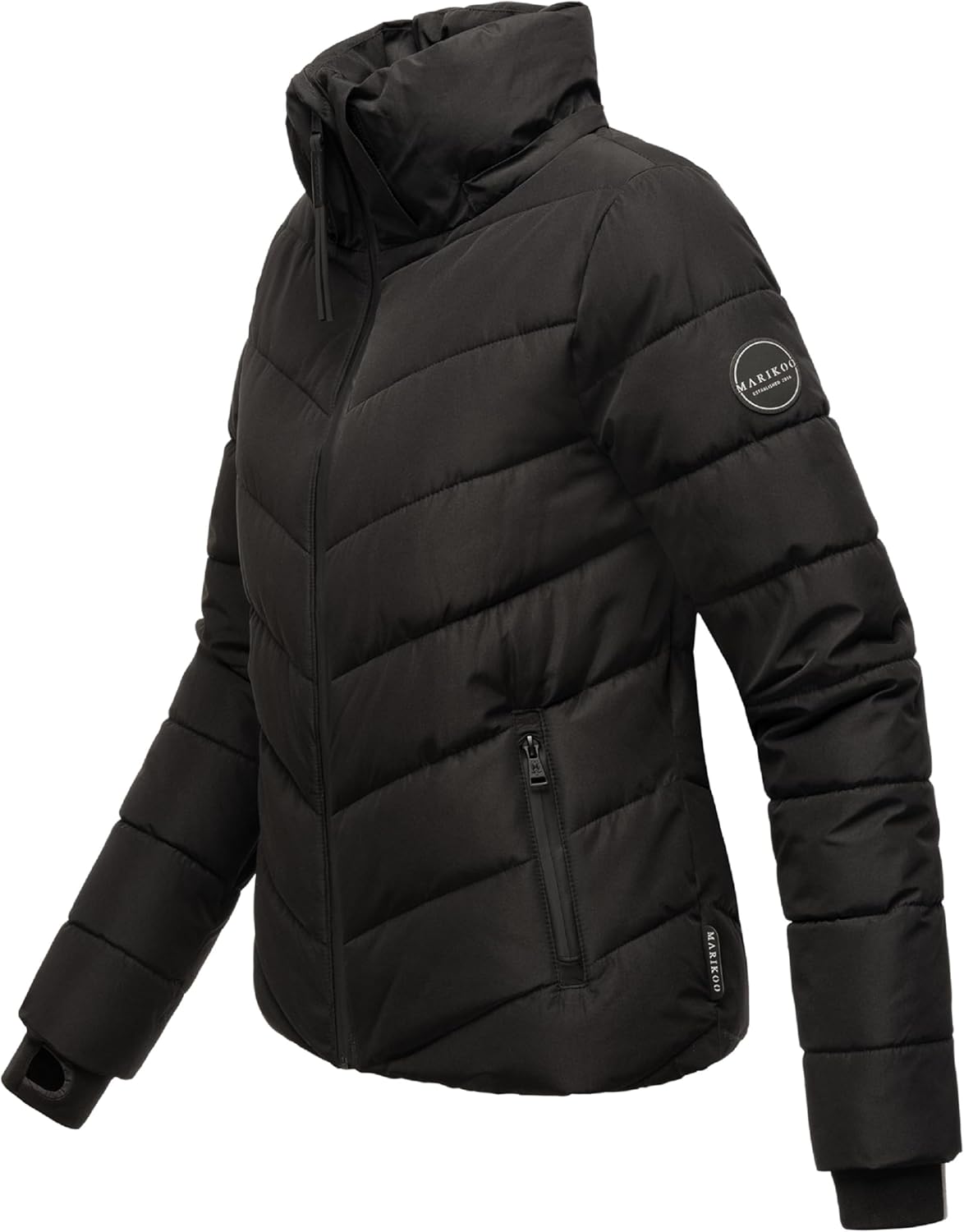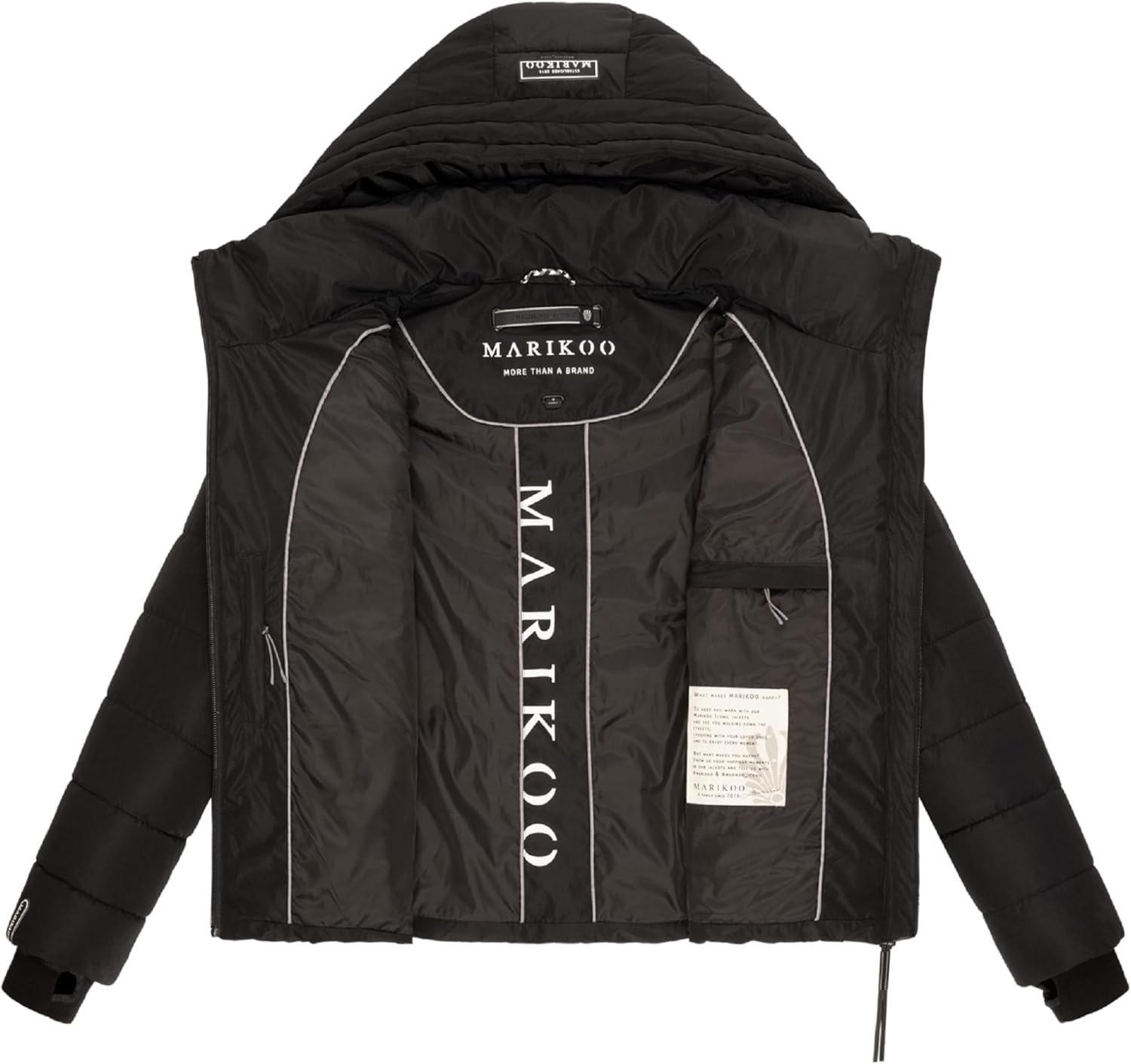 MARIKOO Damen Winterjacke warme Steppjacke mit abnehmbarer Kapuze Samuiaa XVI XS-3XL XL Schwarz, XL