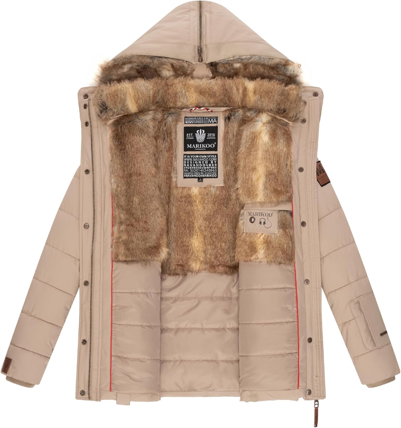 - MATERIAL: Kapuzenjacke aus wasserabweisendem, griffigem Obermaterial, das Innenfutter ist unten gesteppt und oben aus flauschigem Kunstfell, das zum Hineinkuscheln einlädt