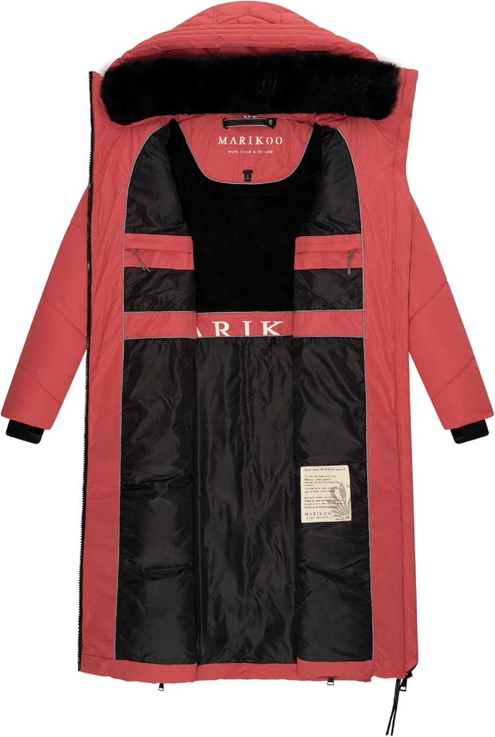 MARIKOO Damen Wintermantel Warmer Steppmantel lang mit Kapuze und abnehmbarem Kunstfellkragen Nadare