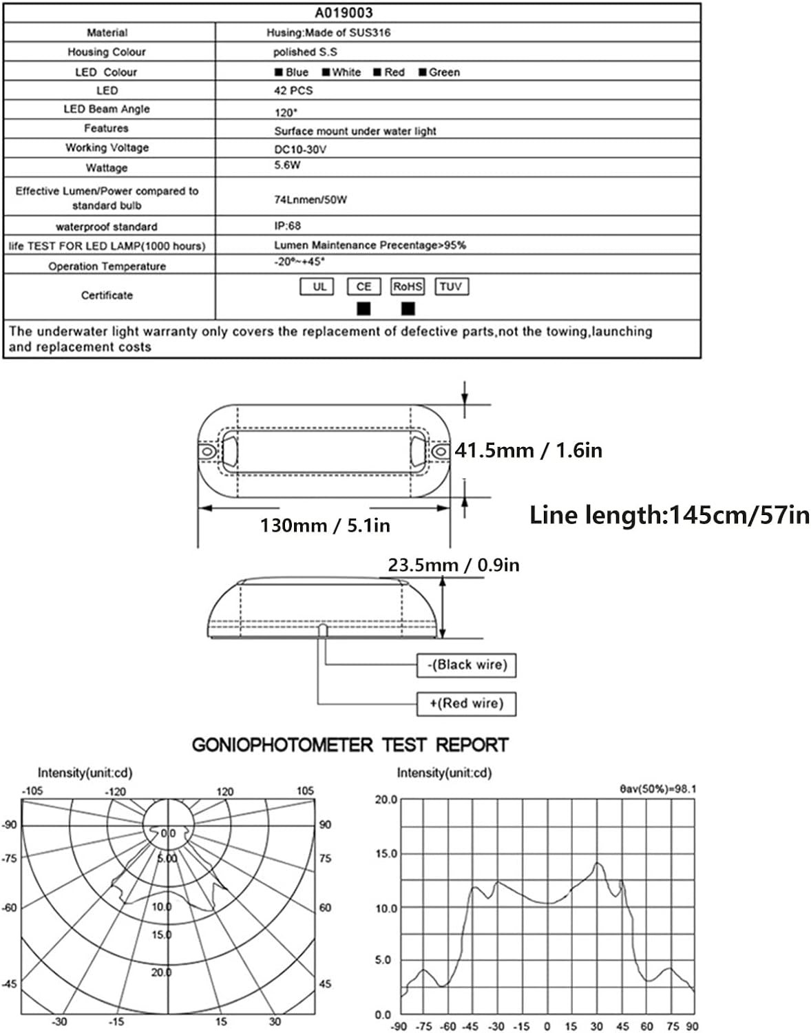 - IP68 wasserdicht: Diese Unterwasser-LED-Bootsleuchte hat eine wasserdichte Dichtung, eine wasserdichte Doppelschichttechnologie und eine wasserdichte IP68-Stufe, sodass das Produkt lange im Wasser verwendet werden kann. Die tiefste Unterstützung unter