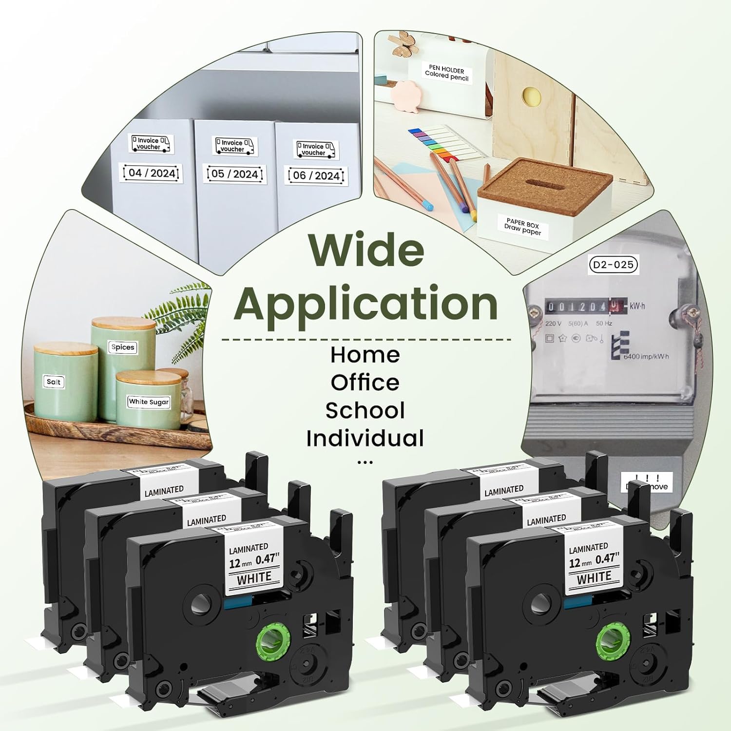 - Geteilte Trägerfolie: Das Trägerband ist in der Mitte längs geteilt, um das Abziehen zu erleichtern. Kompatibel mit Brother TZe TZ 12mm 0.47 inch laminierte weisse Klebebänder ist ein guter Helfer für Ihre Beschriftungsaufgaben zu Hause und im Büro