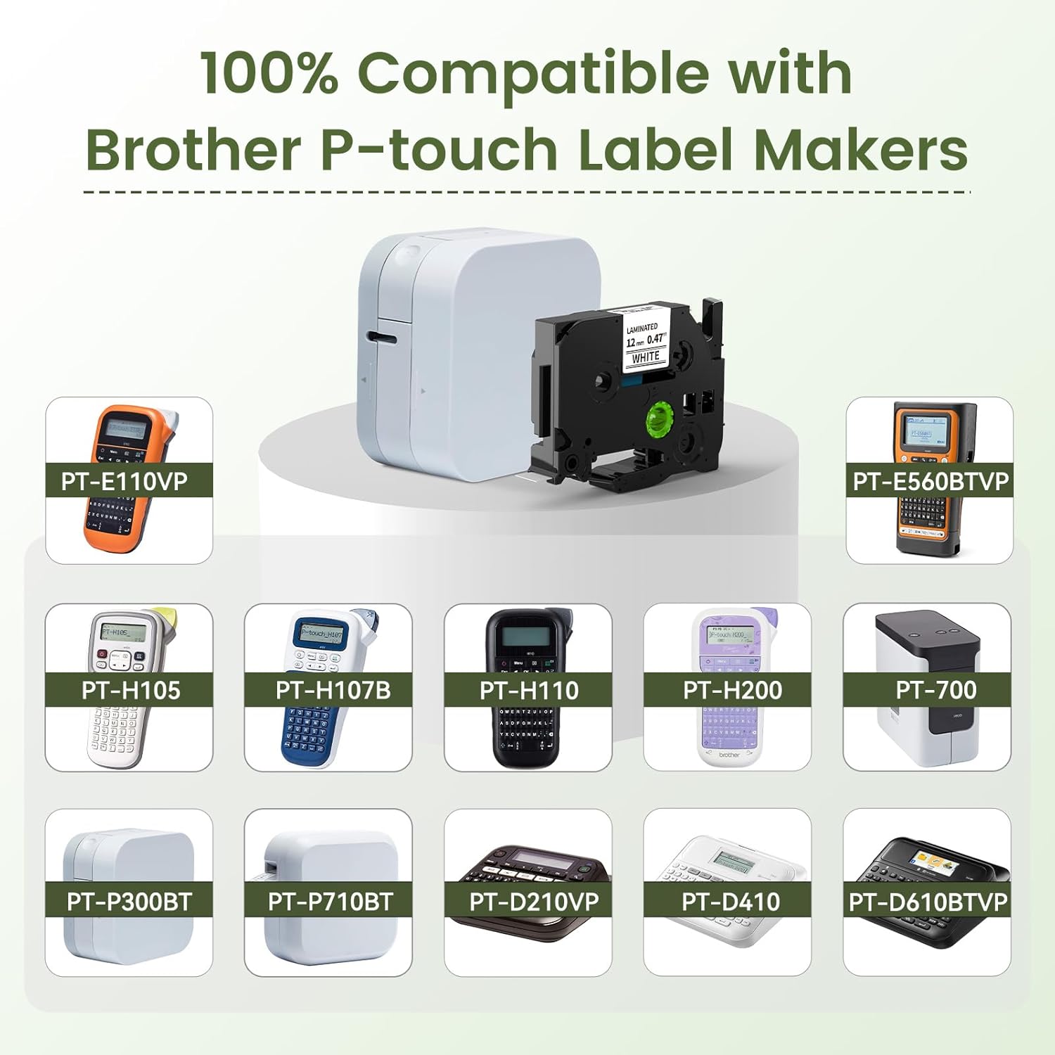 - 100% perfekt Kompatibel mit Brother Ptouch beschriftungsgerät: PT-H100, PT-H100lb, PT-H100r, PT-H101c, PT-H101GB, PT-H105, PT-H107, P-TH108, PT-H110, PTGL-100, PTE100, PTH105, PT-D200, PT-D200VP, PT-D210, PT-D400, PT-D400AD, PT-D400VP, PT-D450, PT-D600,