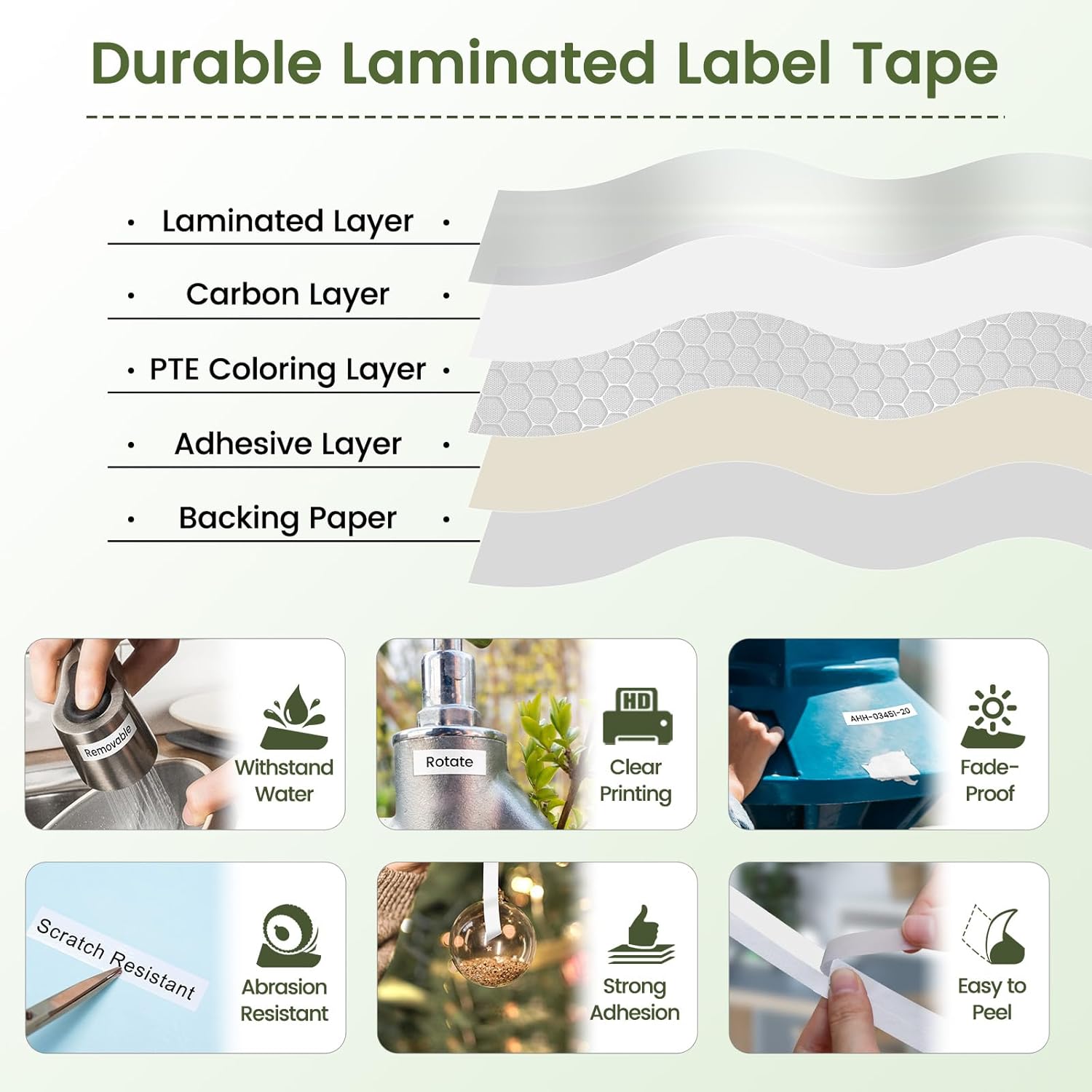 - Breite Anwendung: 12mm x 8m Etikettenbänder eignen sich hervorragend für flache und trockene Oberflächen im Innen- und Aussenbereich, einschliesslich zu Hause, im Büro, in der Schule, im Hotel zur Kennzeichnung von Akten, Ordnern, Regalen, Büchern,