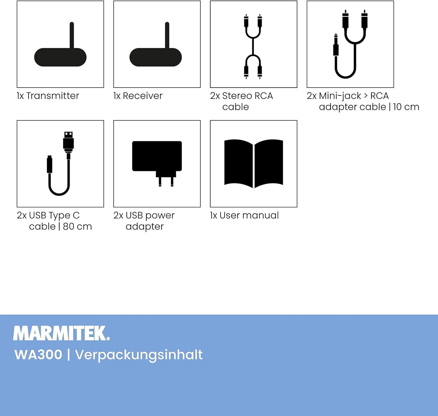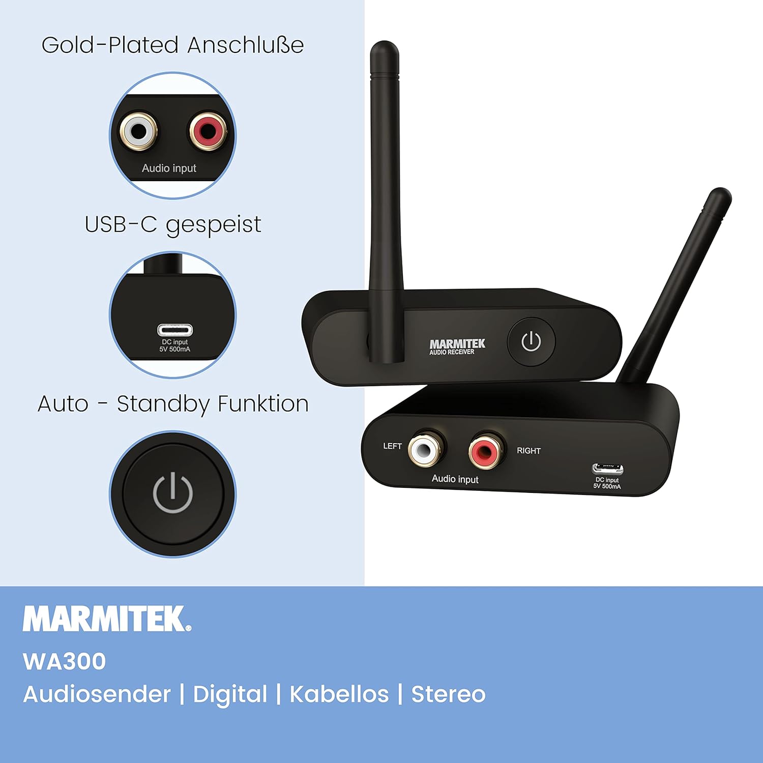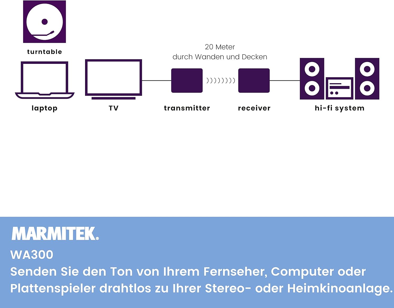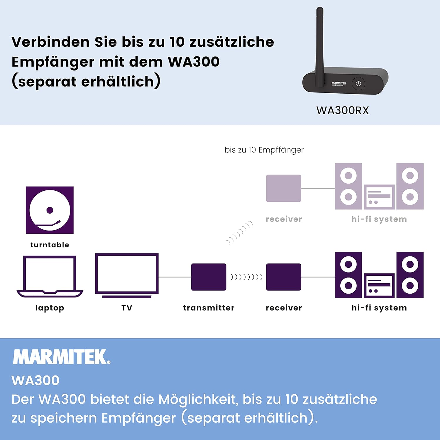 - AUDIO FUNKÜBERTRAGUNG - Senden Sie mit dem WA300 Ton von z.B. Ihrem Fernseher, Plattenspieler oder Laptop) kabellos an Ihre Stereoanlage oder Ihr Heimkino / Home Cinema Set.