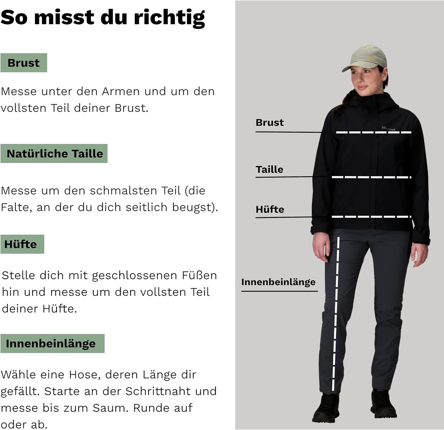 - Damen Outdoorjacke mit zwei rucksackkompatiblen RV-Taschen, verstellbaren Klett-Ärmelbündchen; gewicht circa 370 g, athletischer Schnitt, Rückenlänge circa 71 cm, mit PFC-freier DWR-Imprägnierung