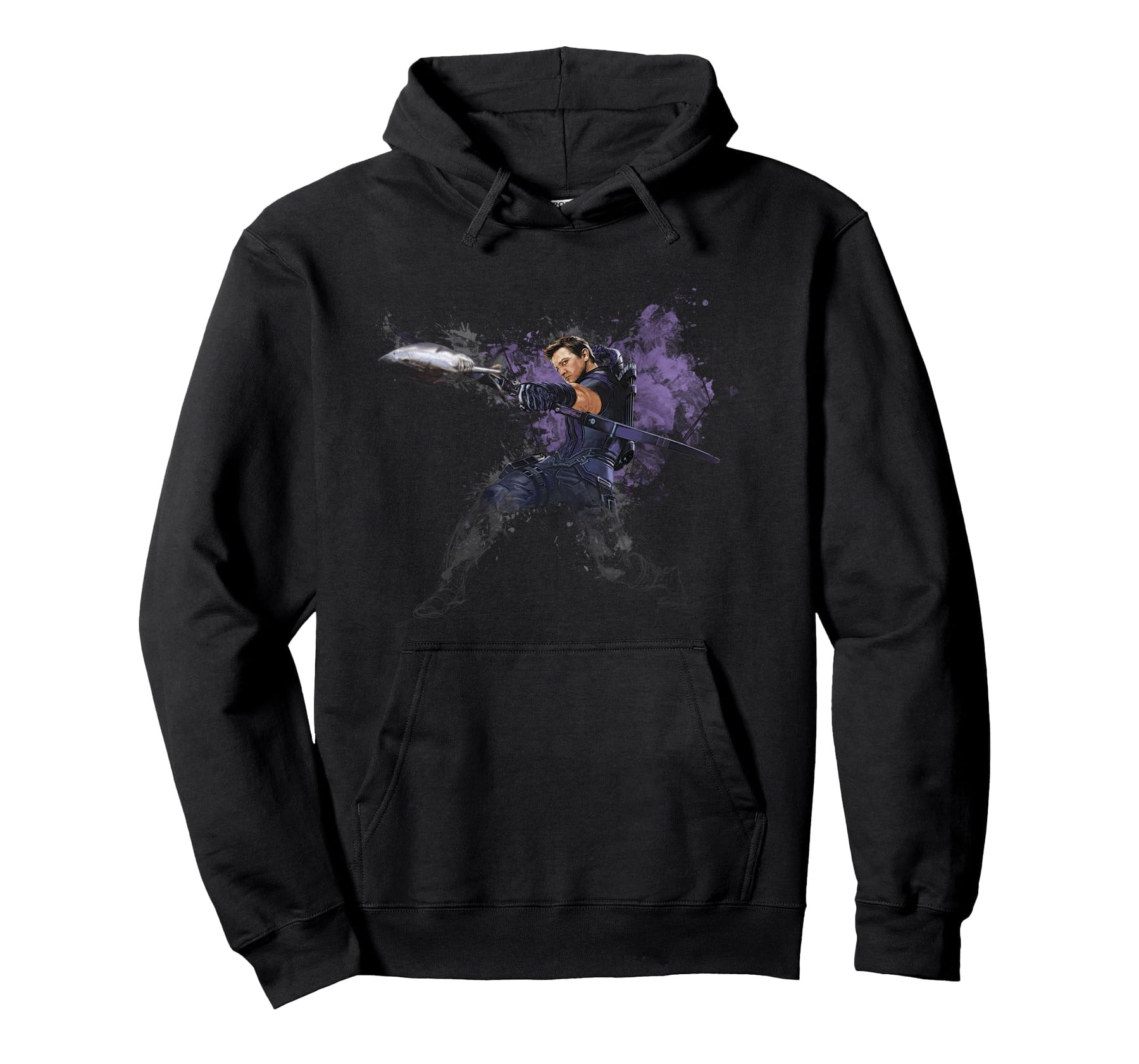 PRODUKTBESCHREIBUNGEN Your style will be right on target when you wear this stunning Hawkeye hooded sweatshirt featuring a half-completed sketch of the Avengers’ amazing archer. With Clint Barton illustrated aiming his bow and arrow, his Super Hero icon splattered with purple paint behind him, this cool Marvel hoodie is a must-have for fans.