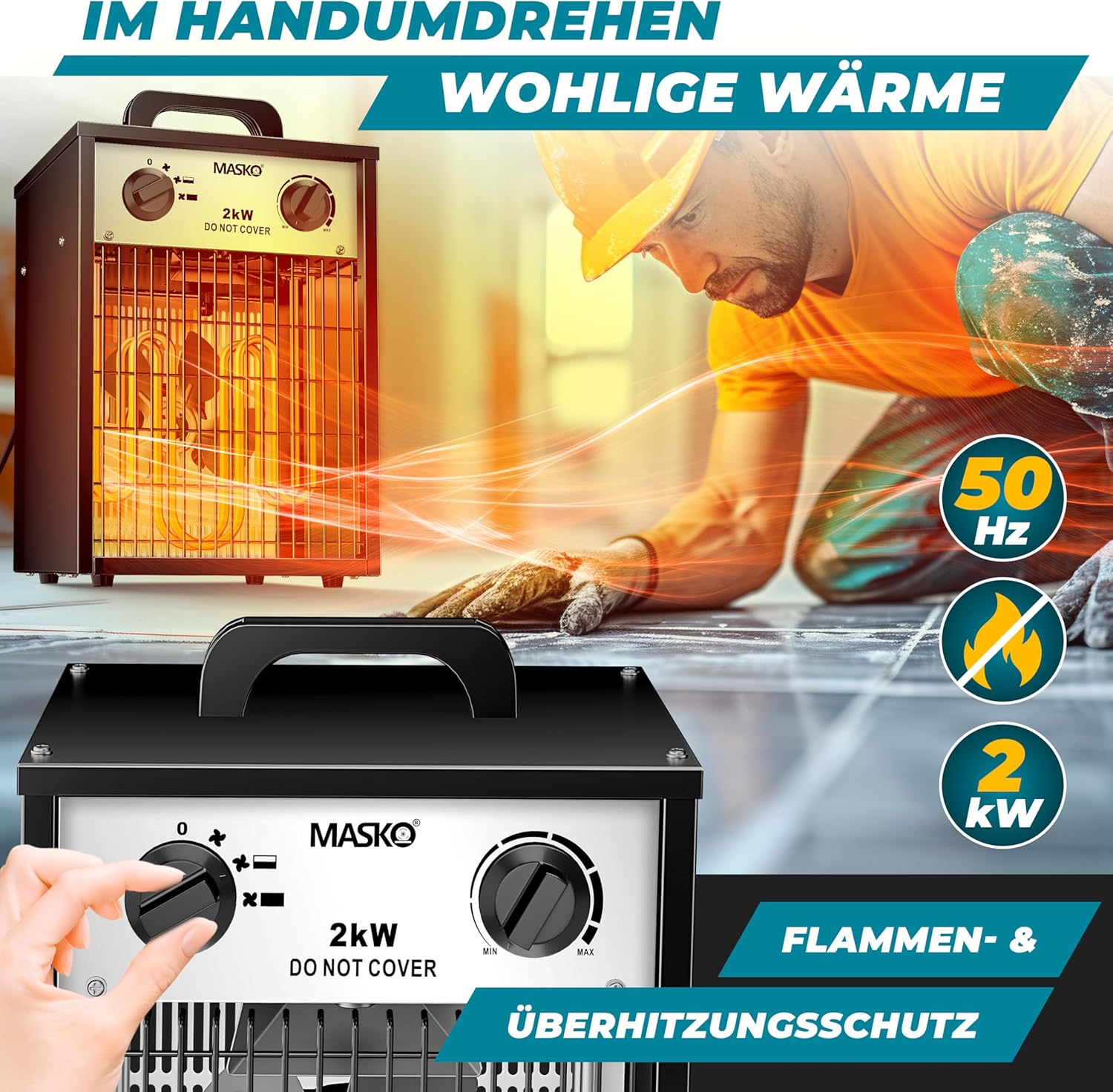 - 𝐅𝐋𝐄𝐗𝐈𝐁𝐄𝐋 𝐄𝐈𝐍𝐒𝐄𝐓𝐙𝐁𝐀𝐑: Egal ob in der Baustelle , Werkstatt Garage, Wohnung, Büro, Keller oder beim Camping - das Gestell sowie der Tragegriff sorgen für eine Flexibilität. Treuer Begleiter an kalten