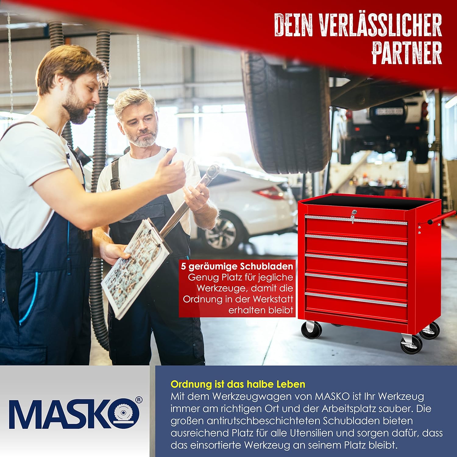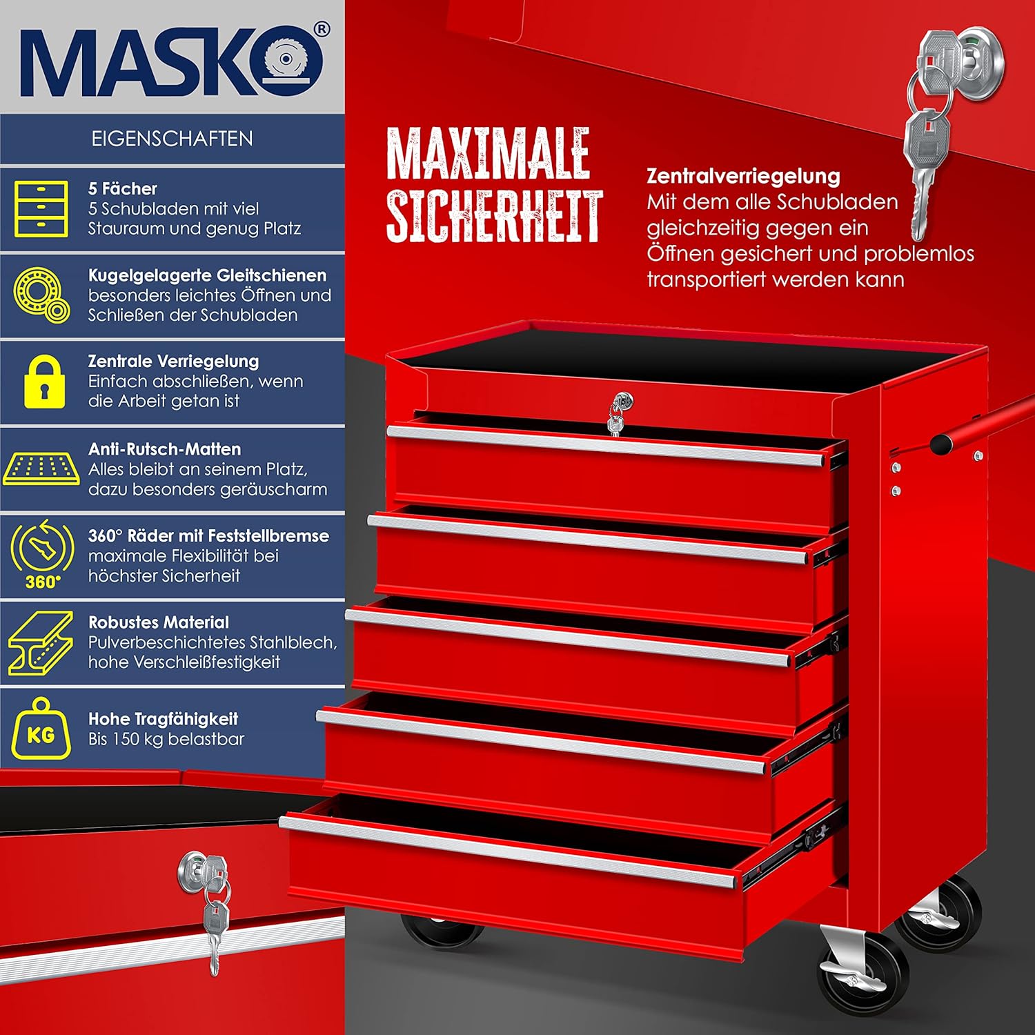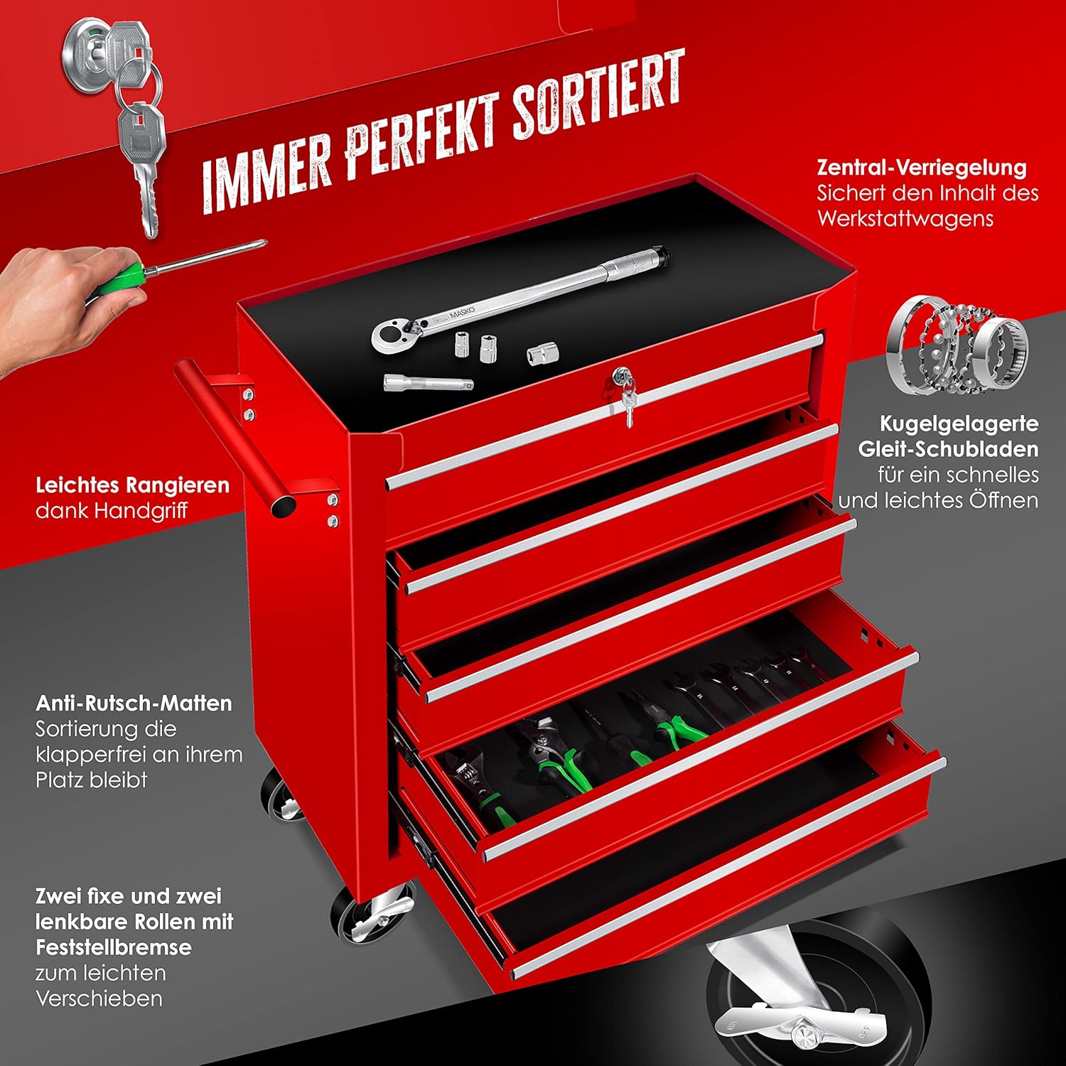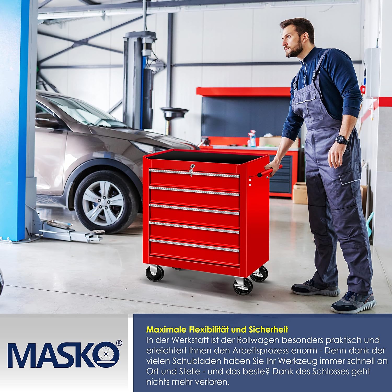 MASKOยฎ Werkstattwagen - 5 Schubladen, Abschliessbar | Massives Metall | Mobiler Werkzeug-Wagen ohne