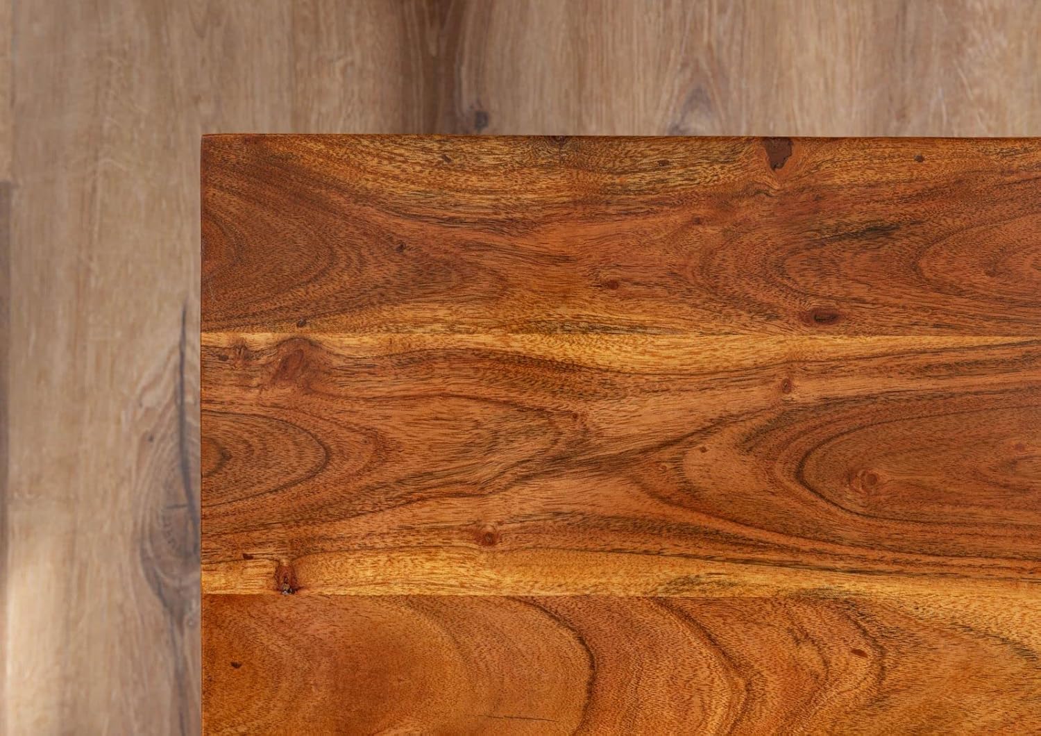 • lackiertes Akazienholz: veredeltes Massivholz im Farbton honig