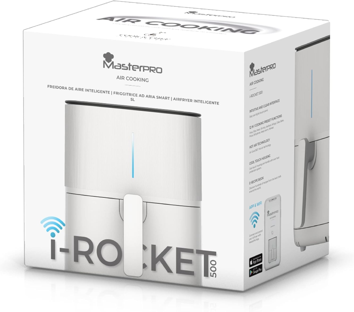 - IHRE HEISSLUFTFRITTEUSE ÜBER IHR HANDY STEUERN: Die I-Rocket 500 verfügt über eine Wifi- und Bluetooth-Verbindung, sodass Sie sie über eine App von Ihrem Smartphone aus steuern können. Programmieren Sie es von zu Hause aus oder bequem vom Sofa aus.