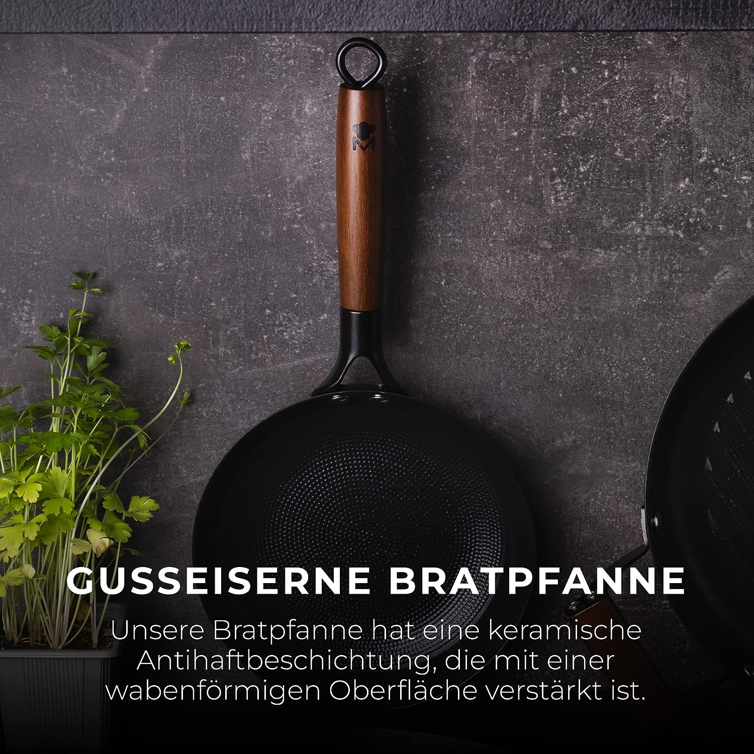 - AUS GEPRESSTEM EISEN: Geniessen Sie alle Vorteile von Gusseisen, aber mit mehr Leichtigkeit. Darüber hinaus verhindert die Antihaftbeschichtung aus Keramik, die mit einer wabenförmigen Oberfläche verstärkt ist, das Anhaften von Speisen.