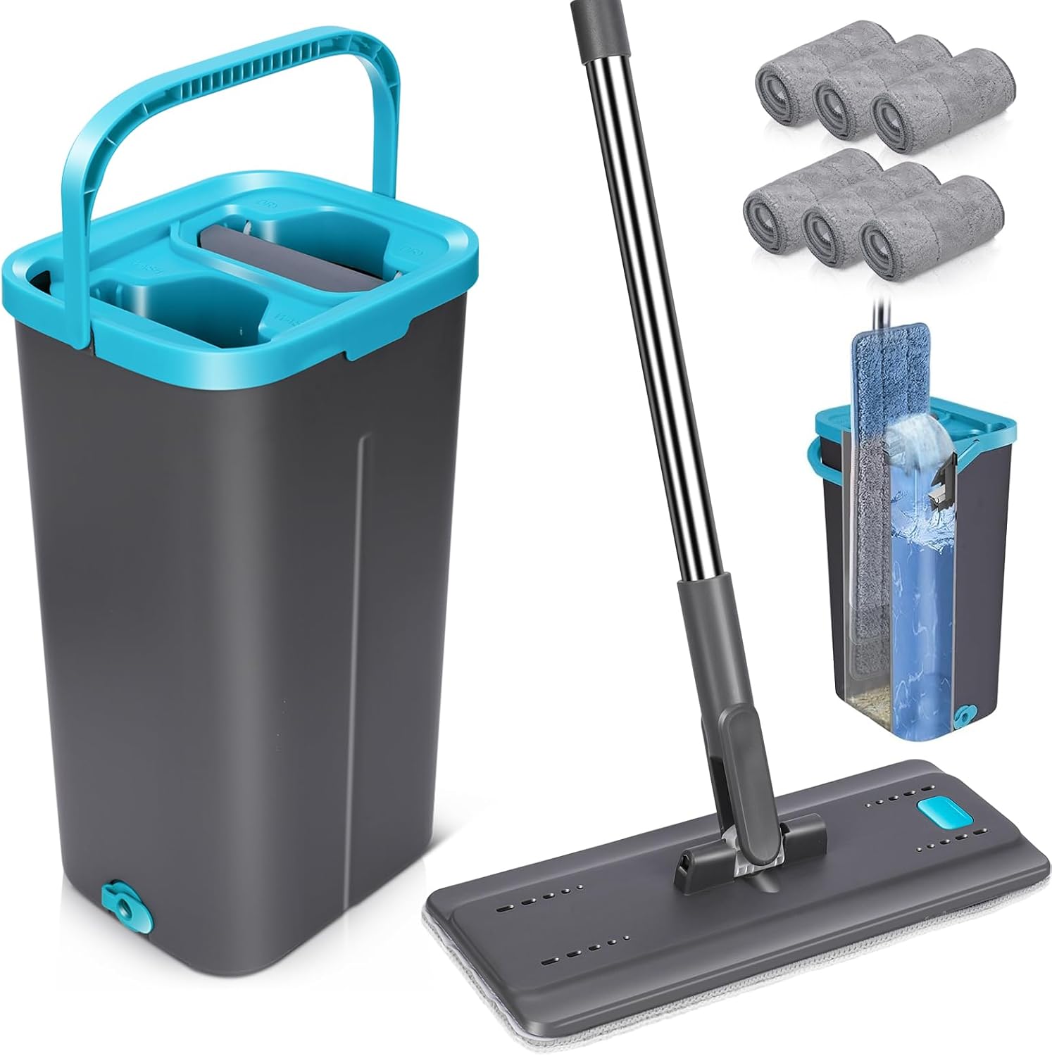- 🌰【Einfach zu bedienen und platzsparend】: Der flache Bodenwischer hat einen Griff, mit dem Sie den Eimer anheben können, um einen anderen Bereich zu reinigen. Der Stöpsel an der Unterseite hilft Ihnen beim Ablassen, Sie müssen nur eine Weile